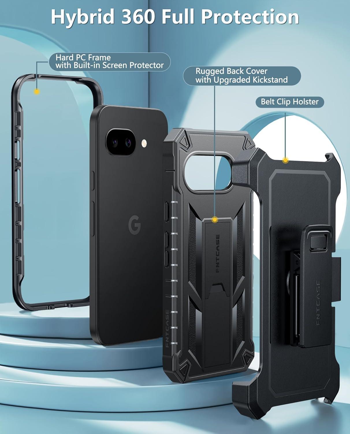 FNTCASE for Google Pixel 9a Case: Military Grade Drop Protection Anti Yellowing Cell Phone Cover – Rugged Shockproof Protective Bumper Transparent Cases(Clear)(Black)