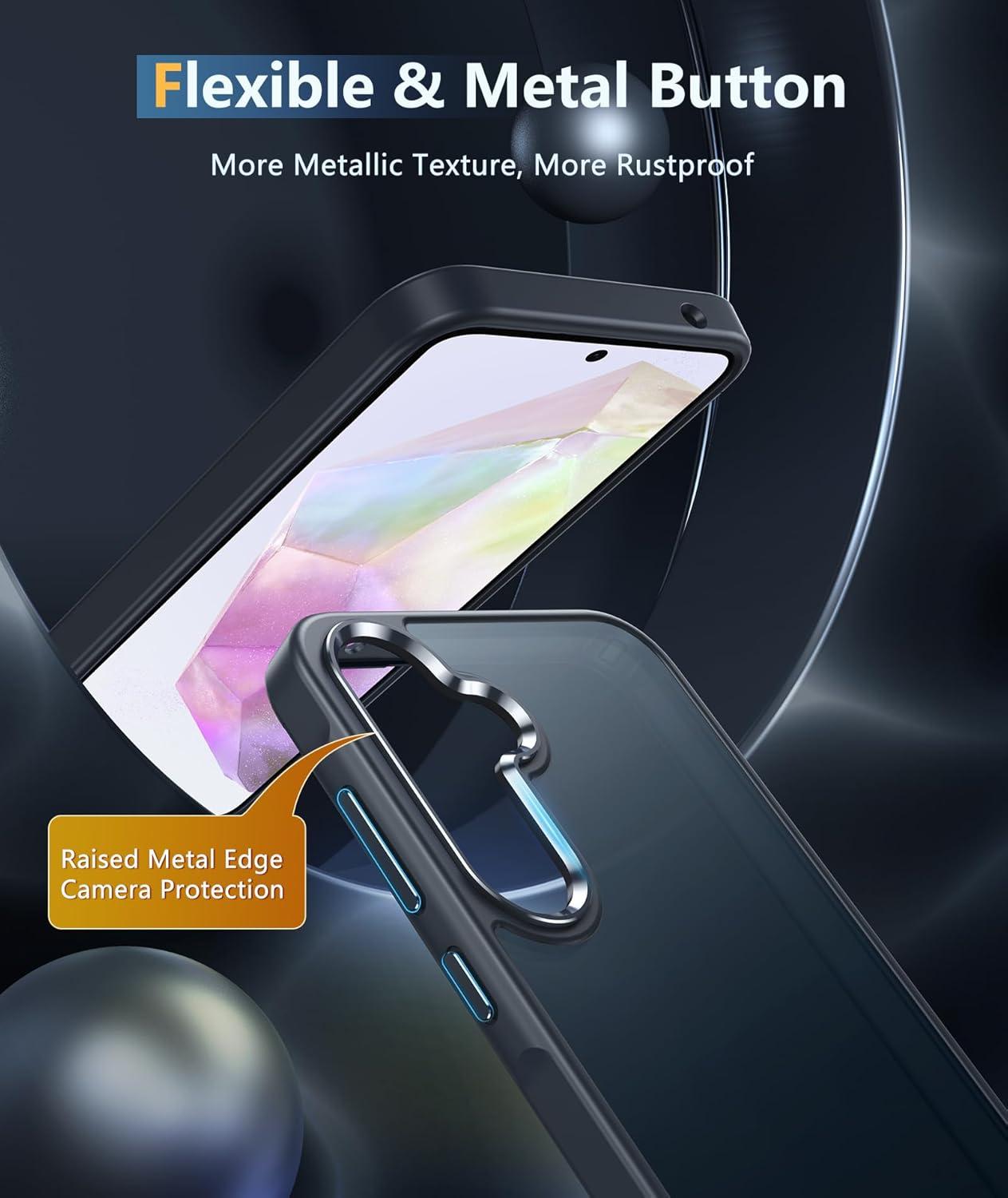 FNTCASE for Galaxy A16 5G Phone Case: Magnetic Matte Translucent Military Grade Drop Protection Cell Phone Cover – Slim Rugged Durable Shockproof Protective for Samsung A16 Cases – Black(Light Blue)
