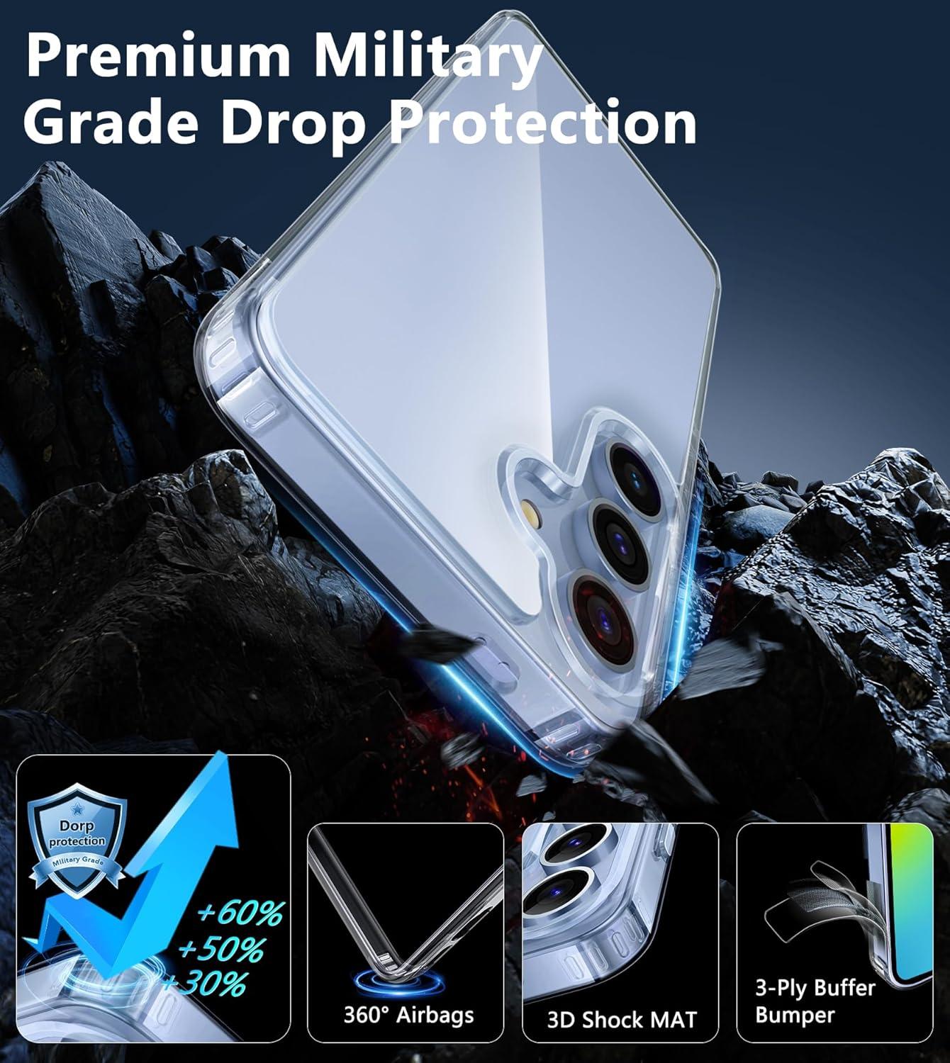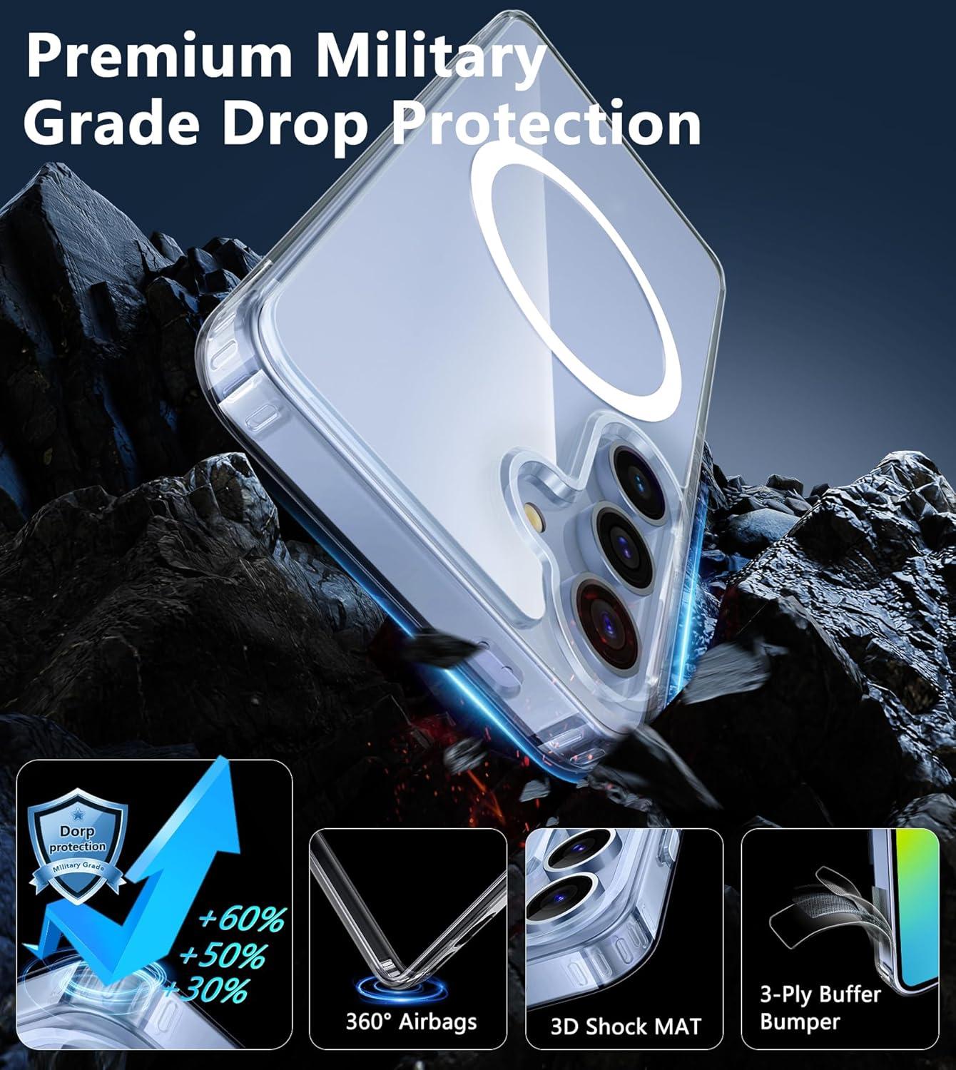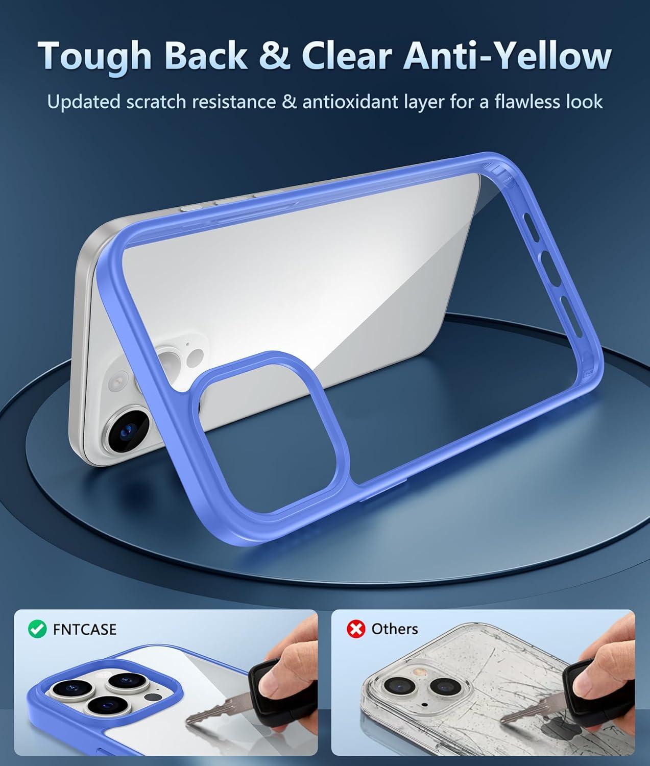 FNTCASE for iPhone 16 Pro Case: Clear Phone Cases Compatible with Magsafe Slim Anti Yellowing Military Grade Drop Protection Rugged Shockproof Protective Transparent Cell Phone Cover (B-Clear)(D-Ultramarine)