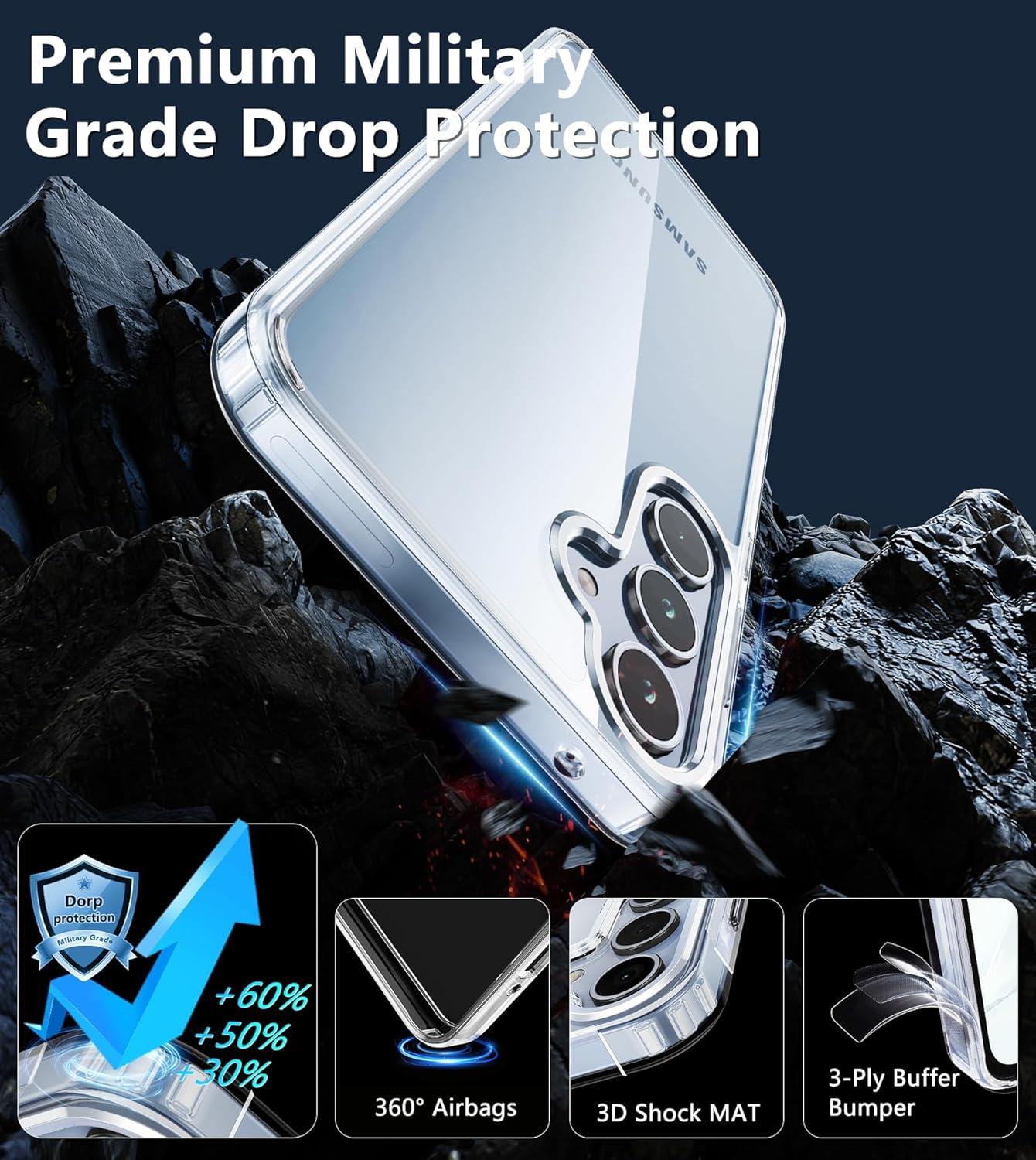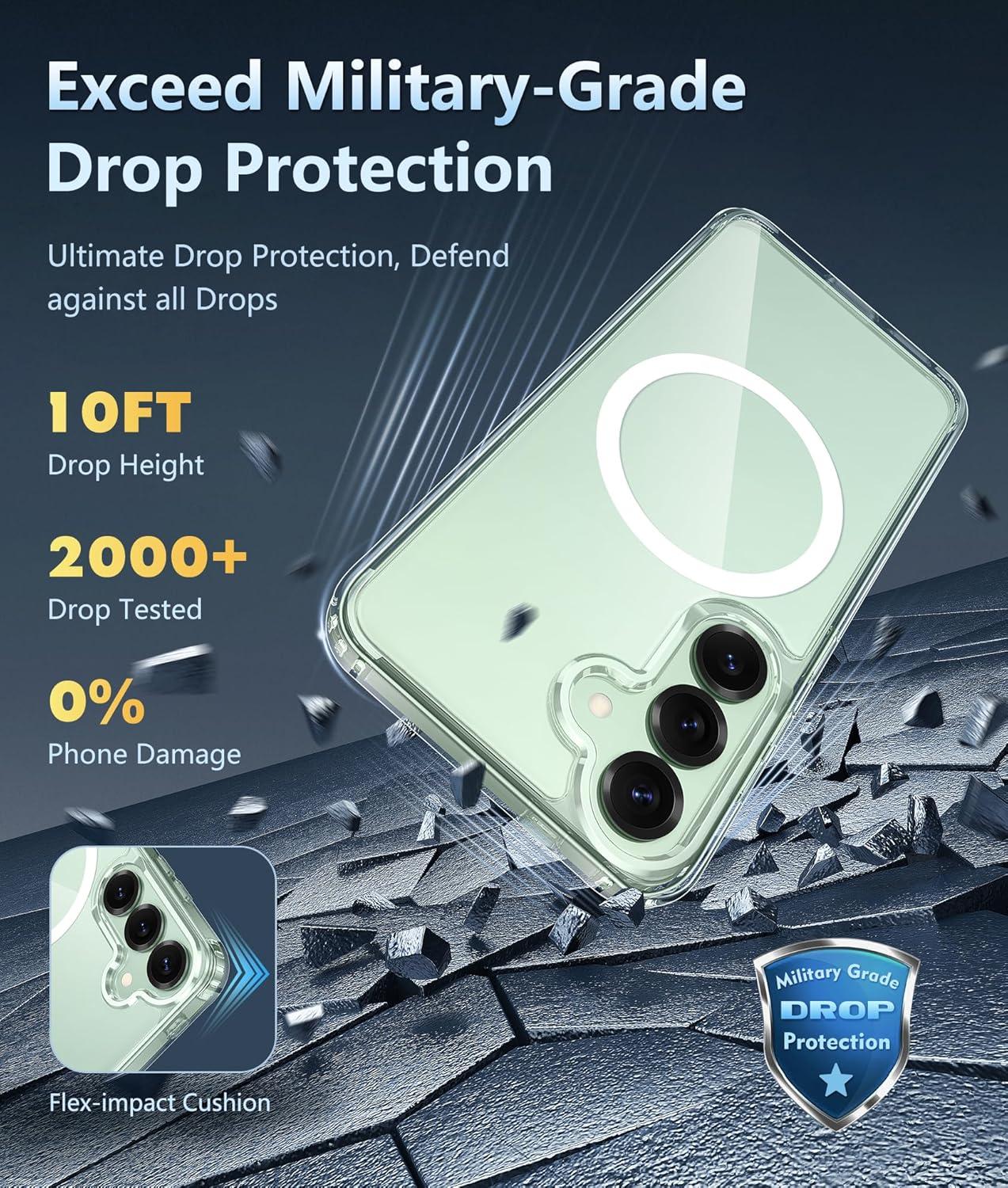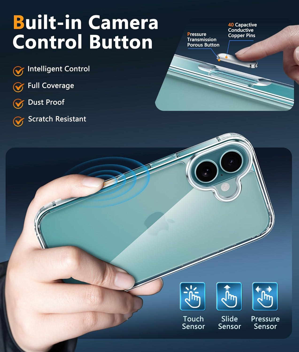 FNTCASE for iPhone 16 Pro Case: Clear Phone Cases Compatible with Magsafe Slim Anti Yellowing Military Grade Drop Protection Rugged Shockproof Protective Transparent Cell Phone Cover (B-Clear)(D-Ultramarine)