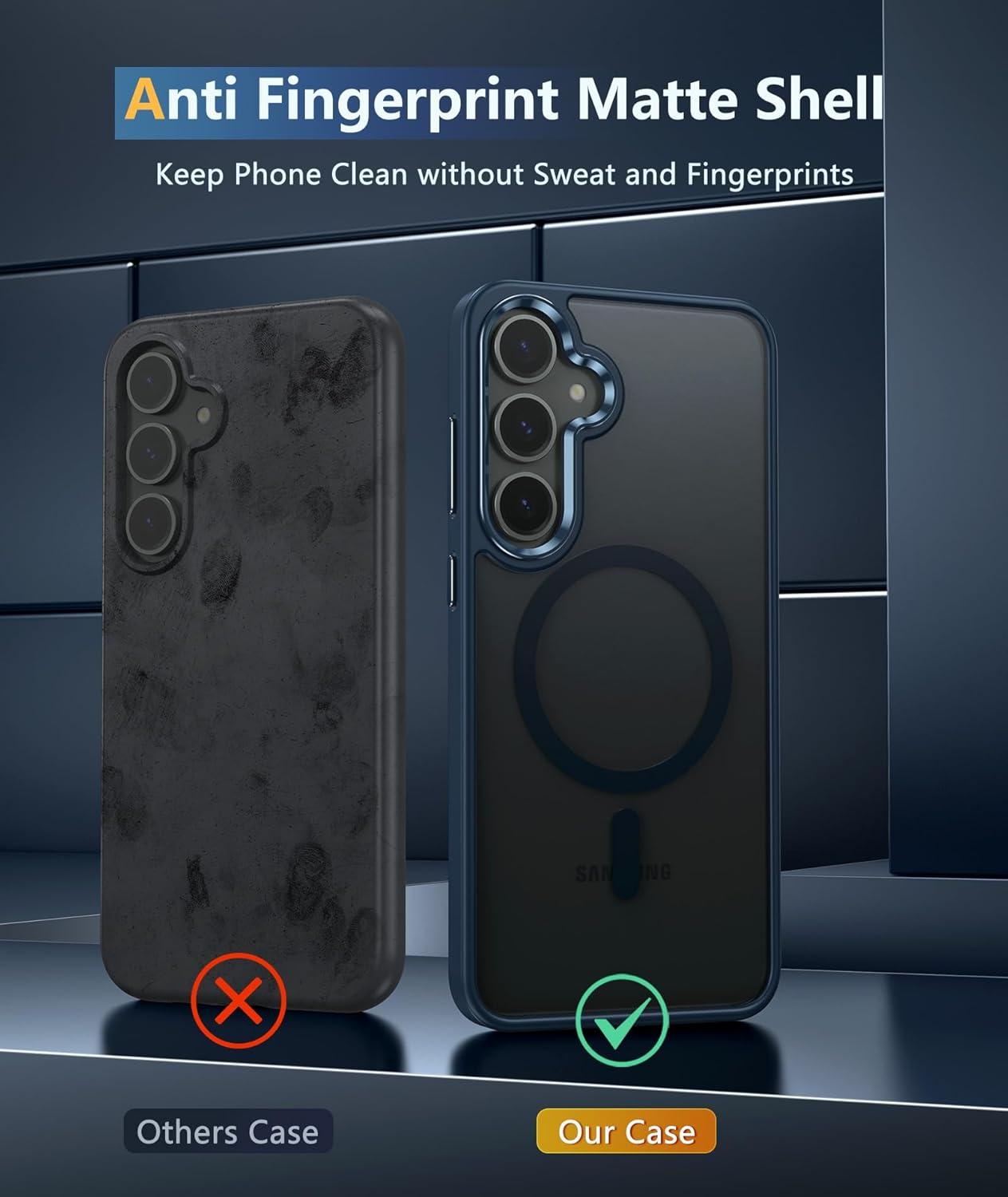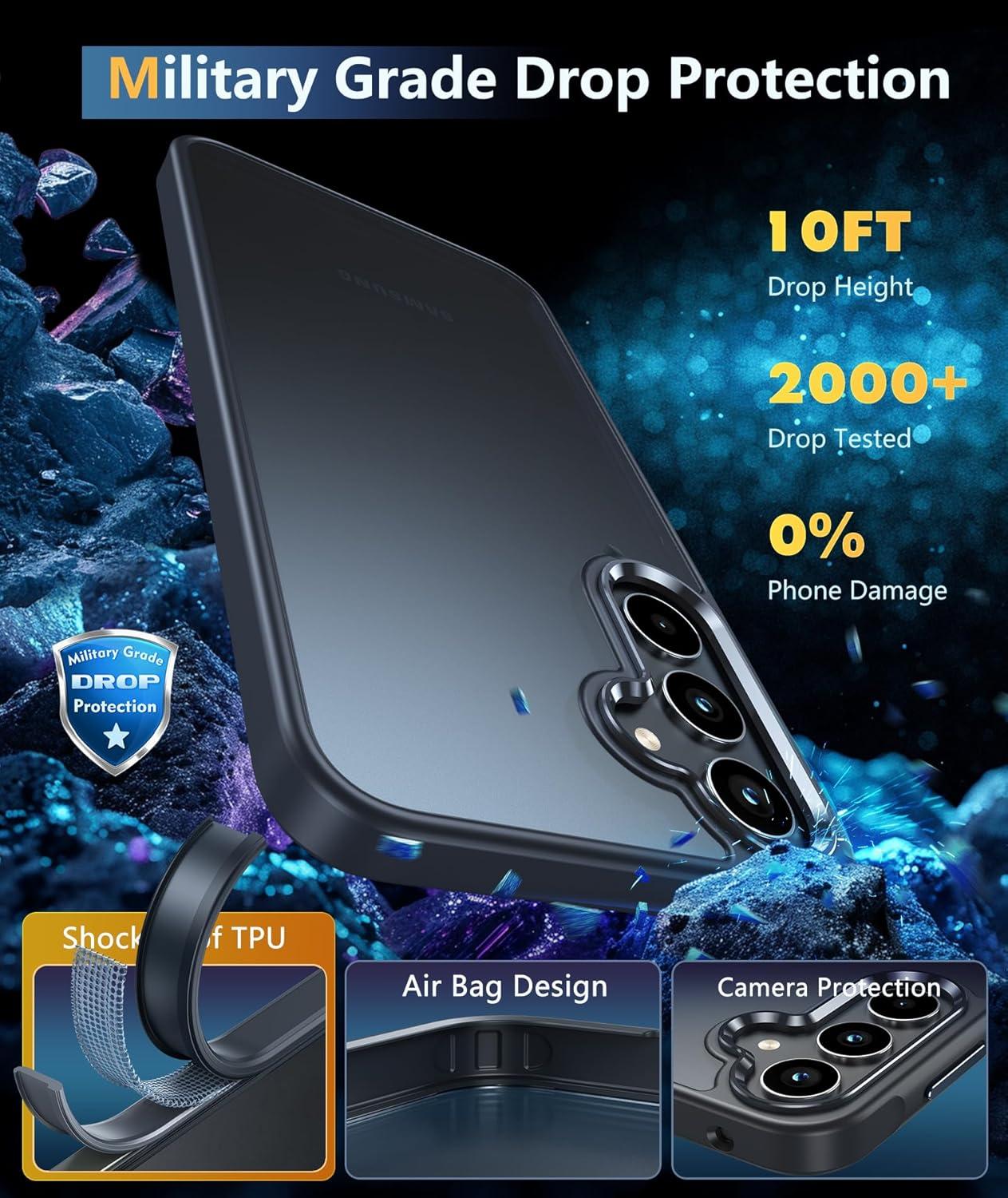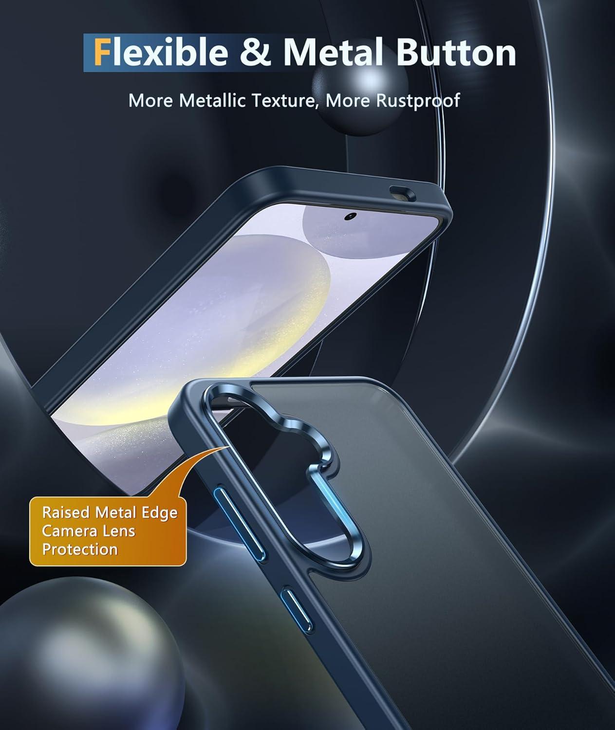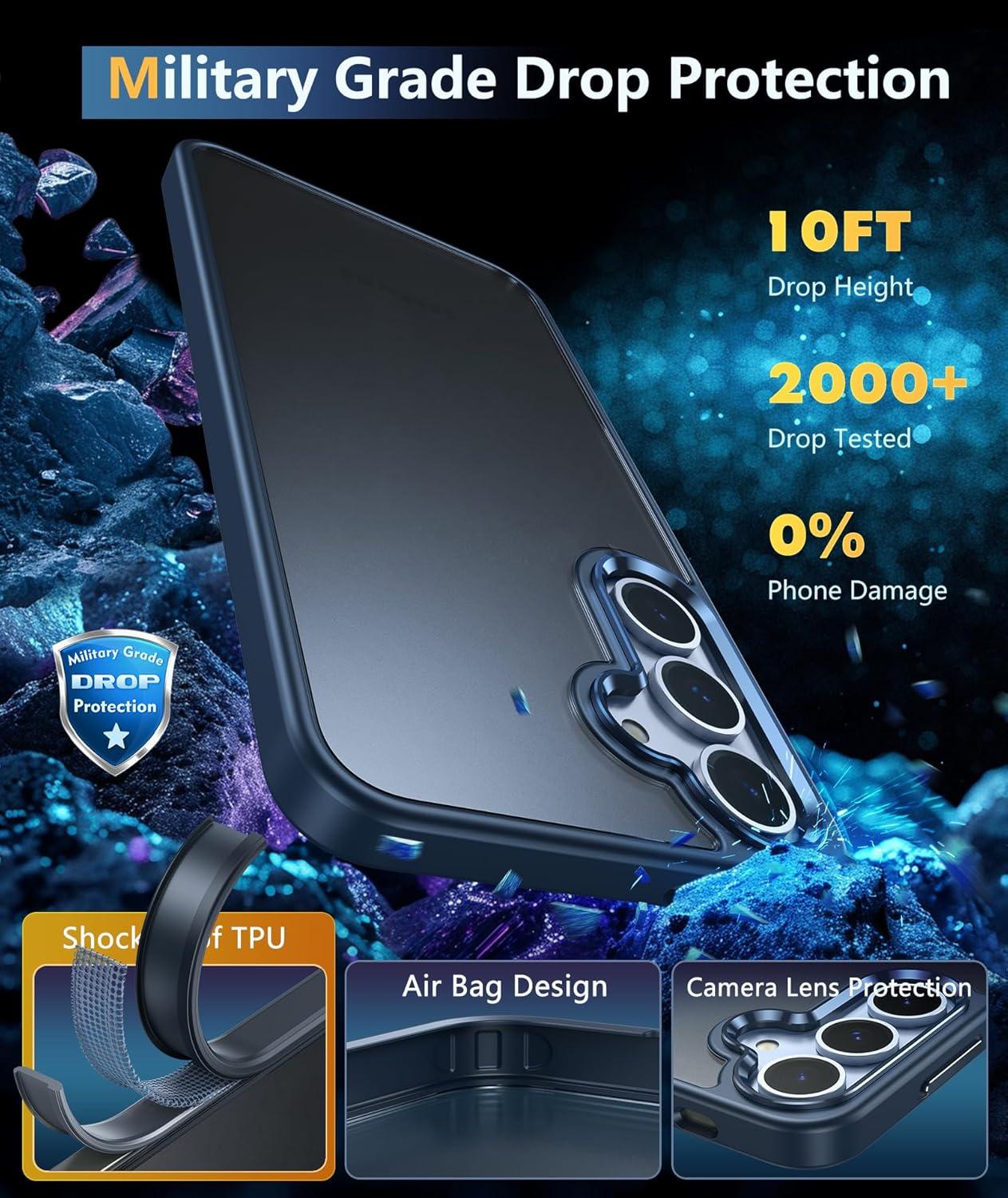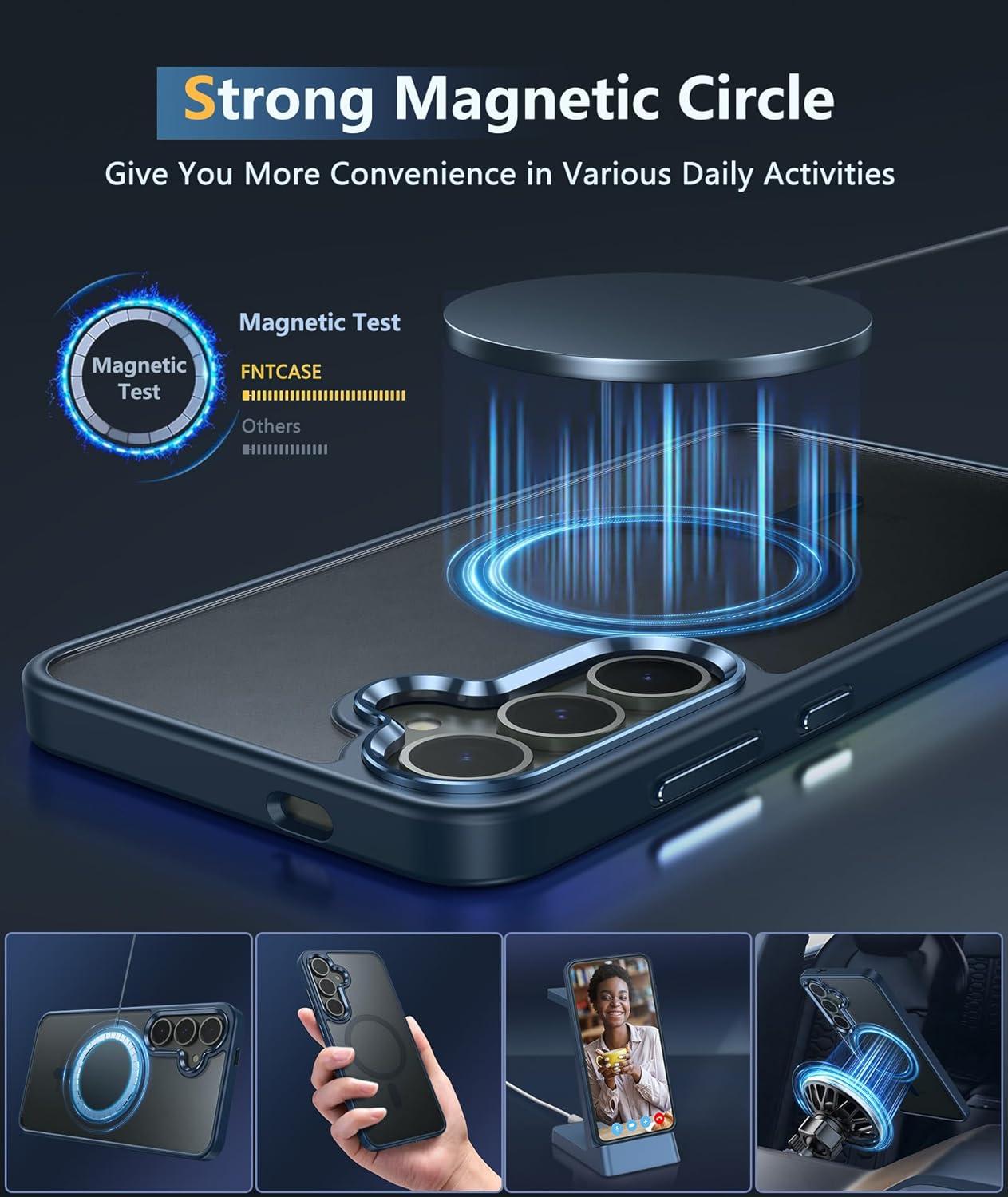 FNTCASE for Galaxy A16 5G Phone Case: Magnetic Matte Translucent Military Grade Drop Protection Cell Phone Cover – Slim Rugged Durable Shockproof Protective for Samsung A16 Cases – Black(Blue)