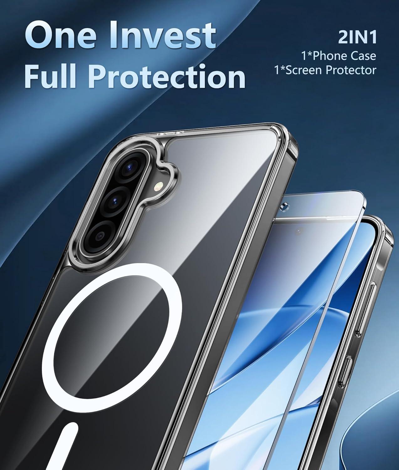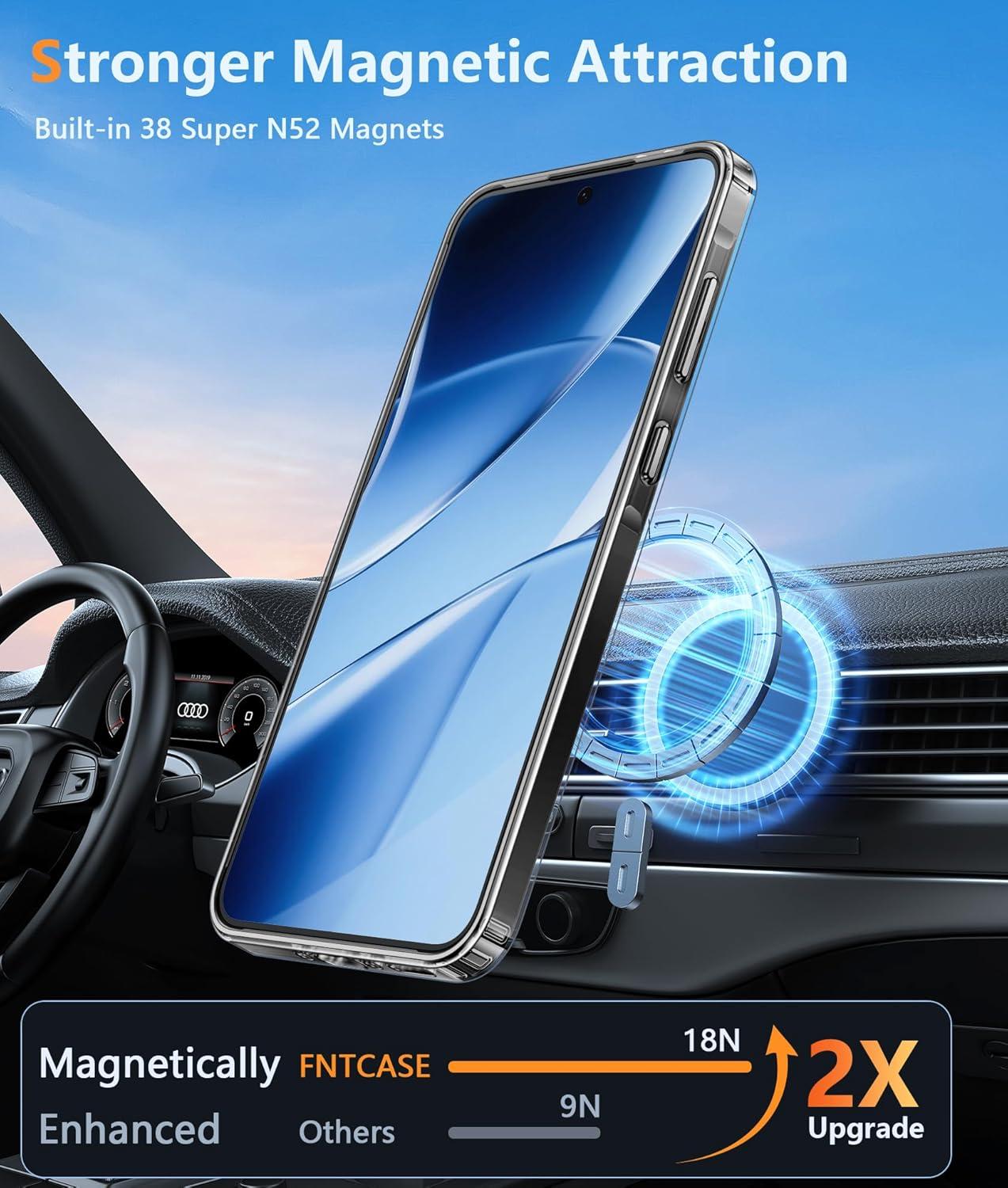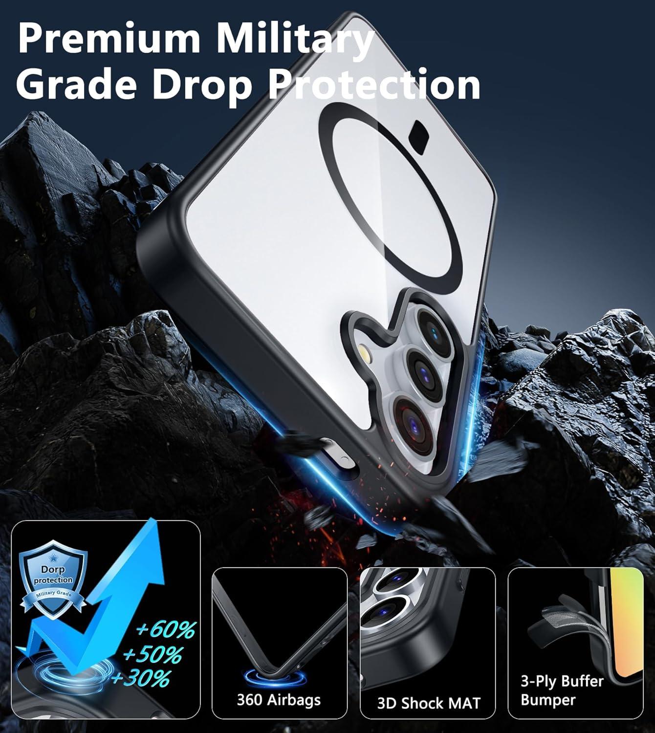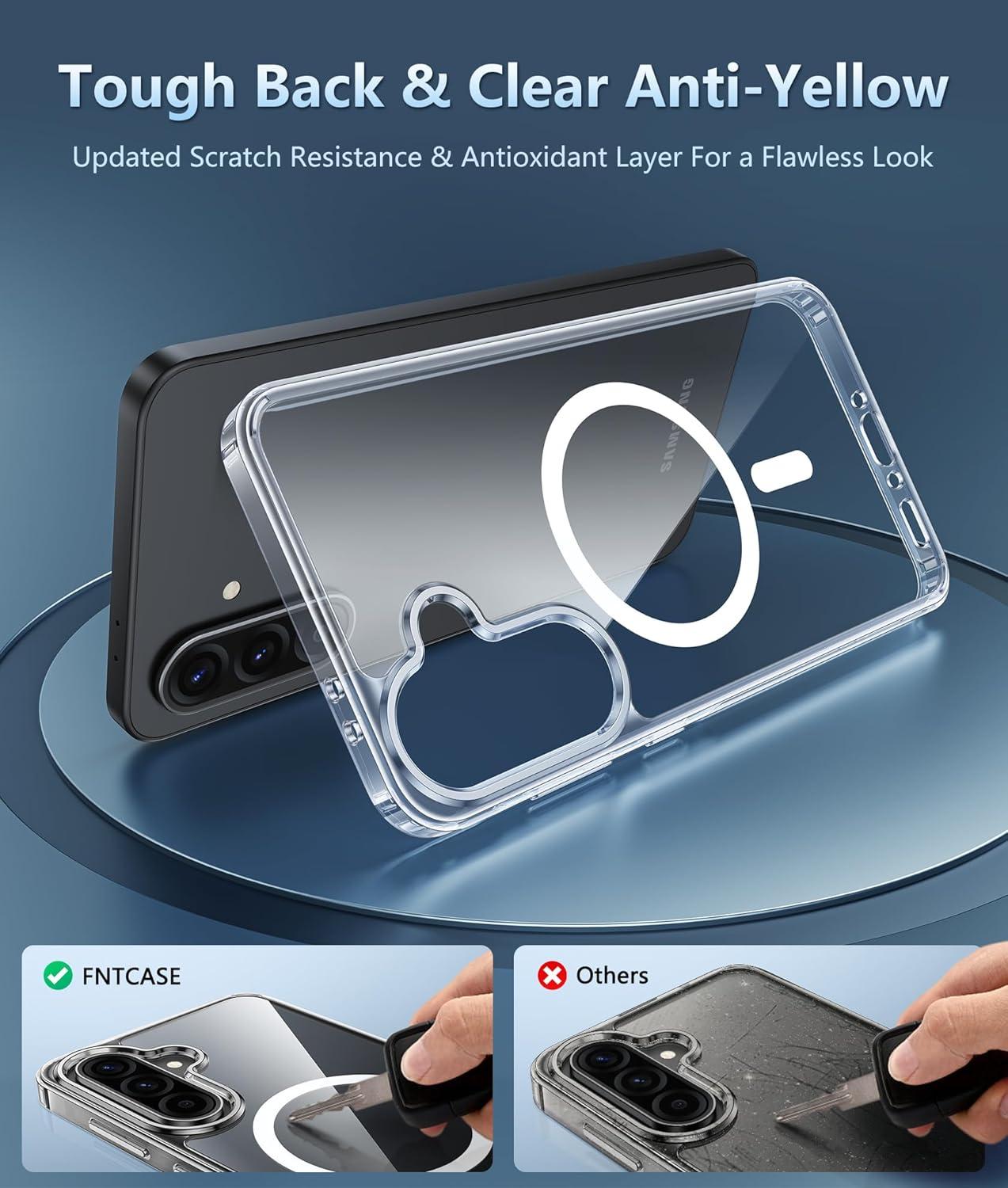 FNTCASE for iPhone 16 Pro Case: Clear Phone Cases Compatible with Magsafe Slim Anti Yellowing Military Grade Drop Protection Rugged Shockproof Protective Transparent Cell Phone Cover (B-Clear)(D-Black Magnet)