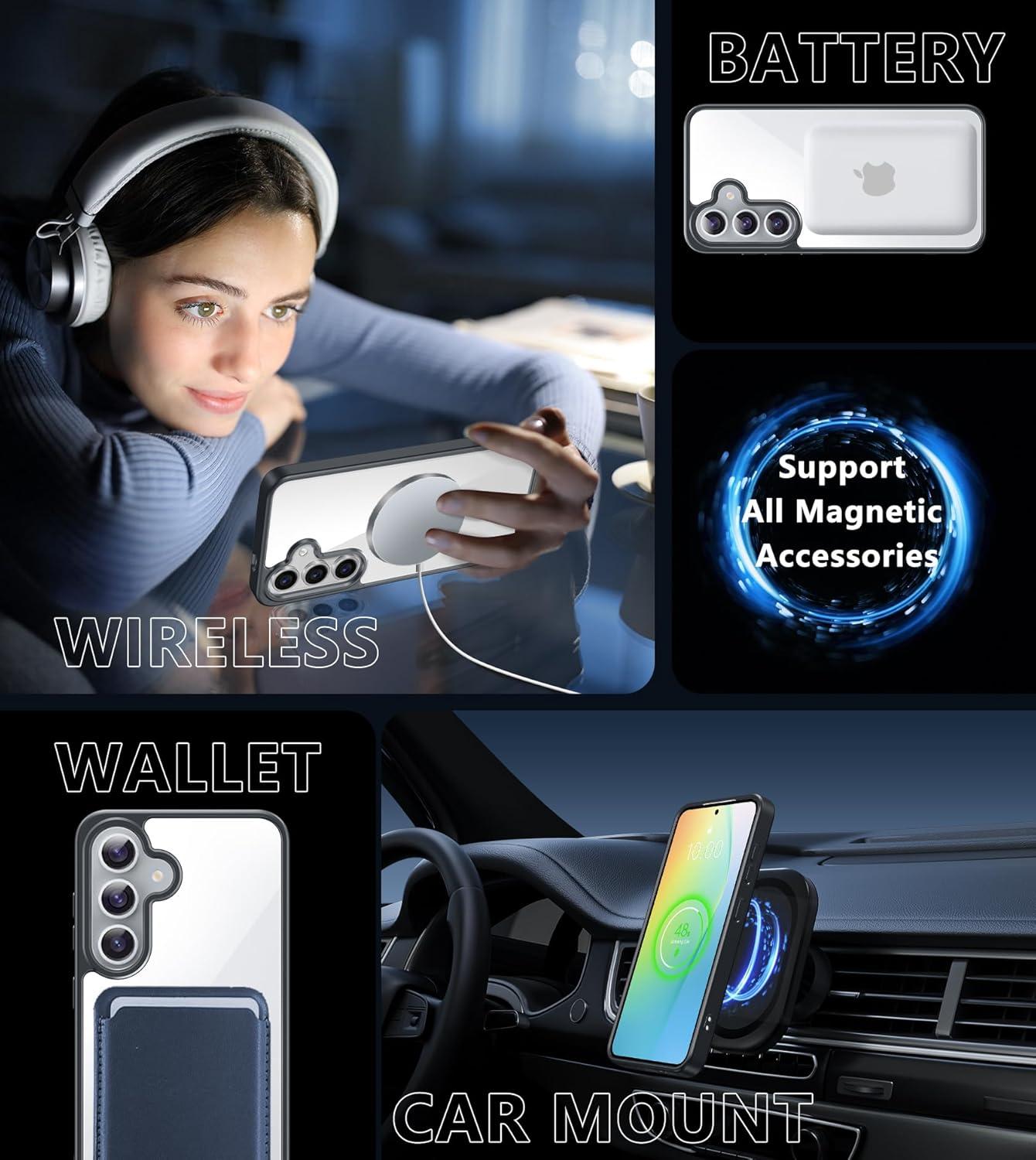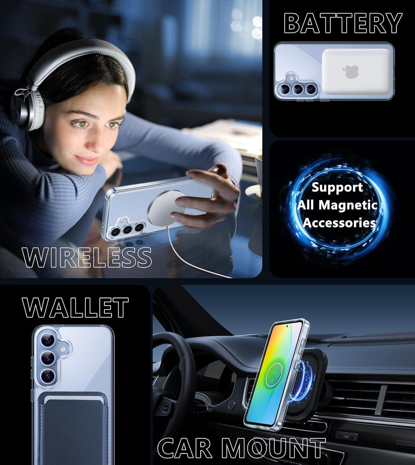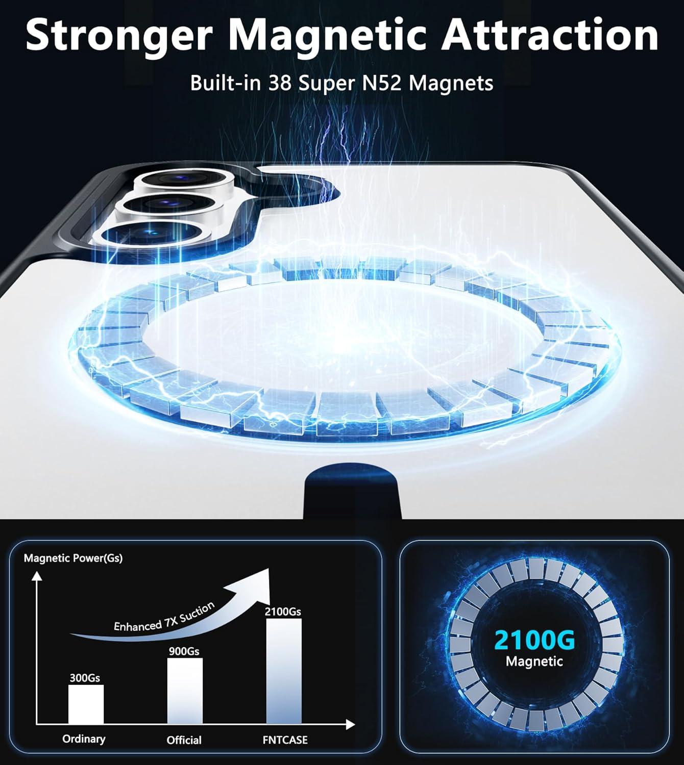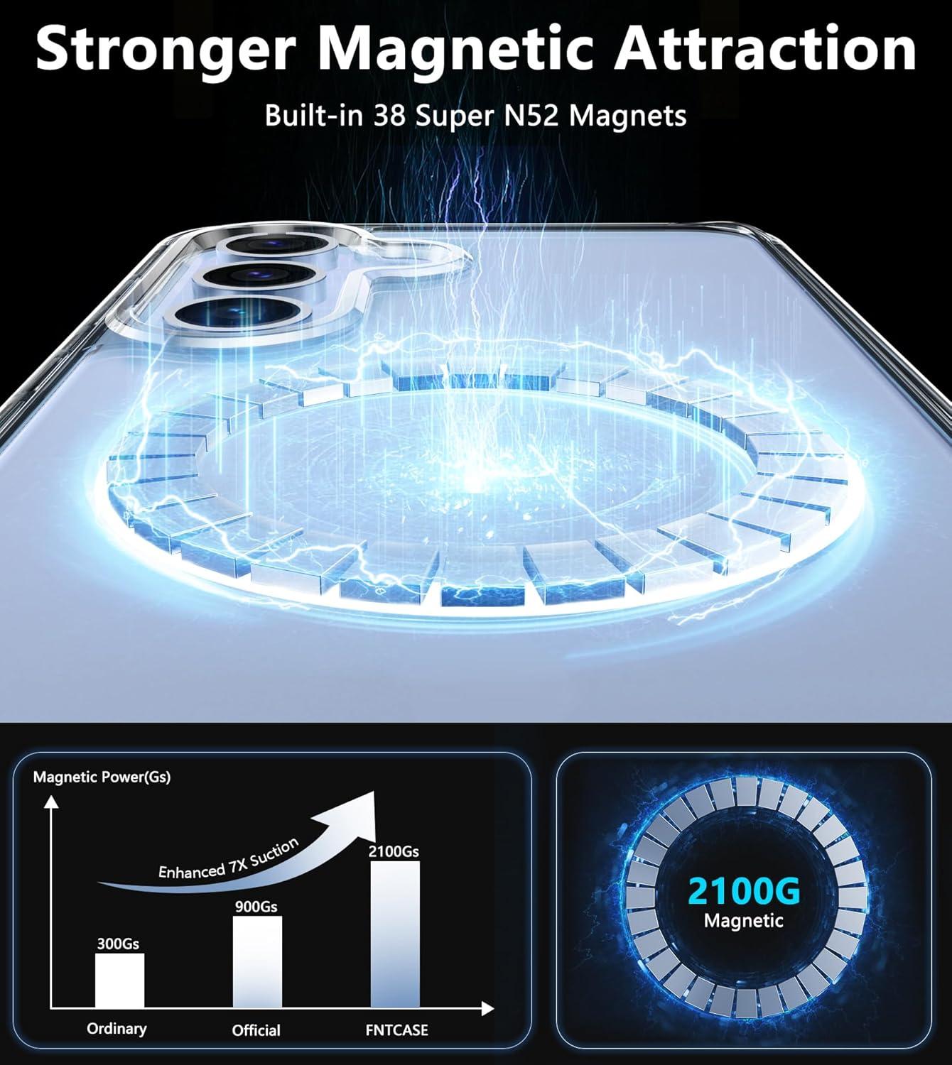 FNTCASE for iPhone 16 Pro Case: Clear Phone Cases Compatible with Magsafe Slim Anti Yellowing Military Grade Drop Protection Rugged Shockproof Protective Transparent Cell Phone Cover (B-Clear)(D-Black Magnet)