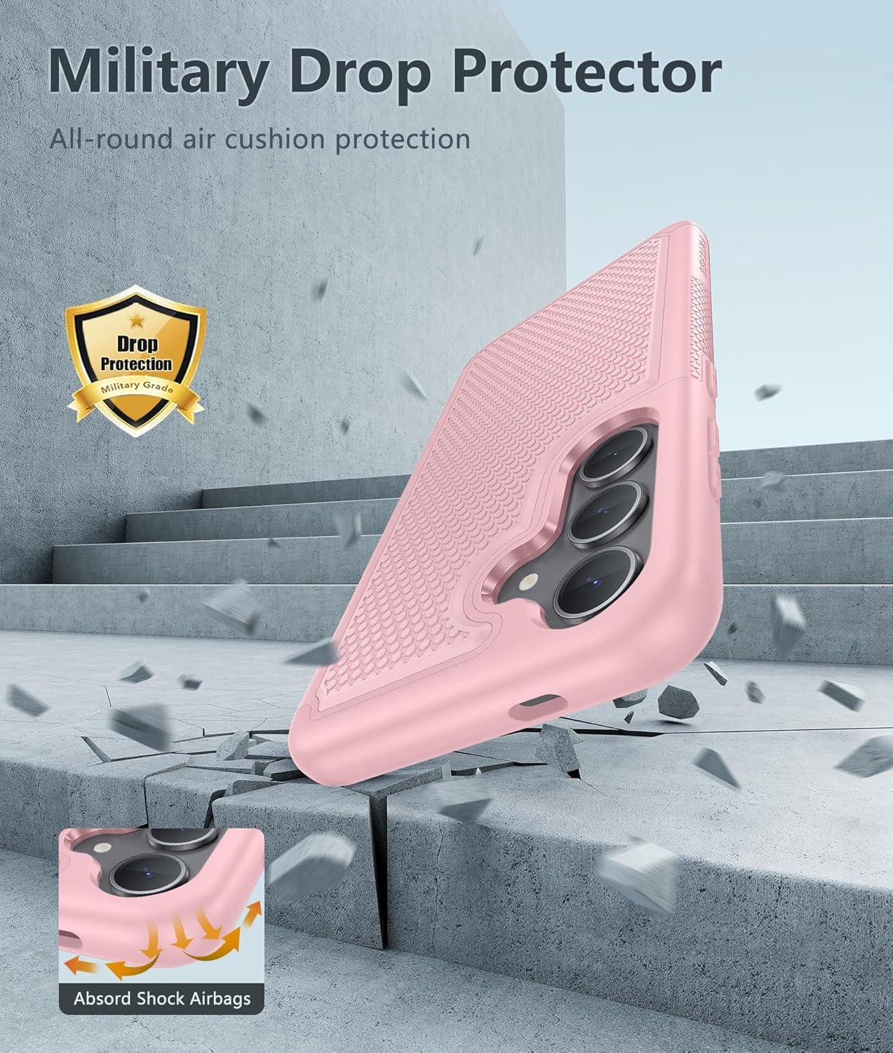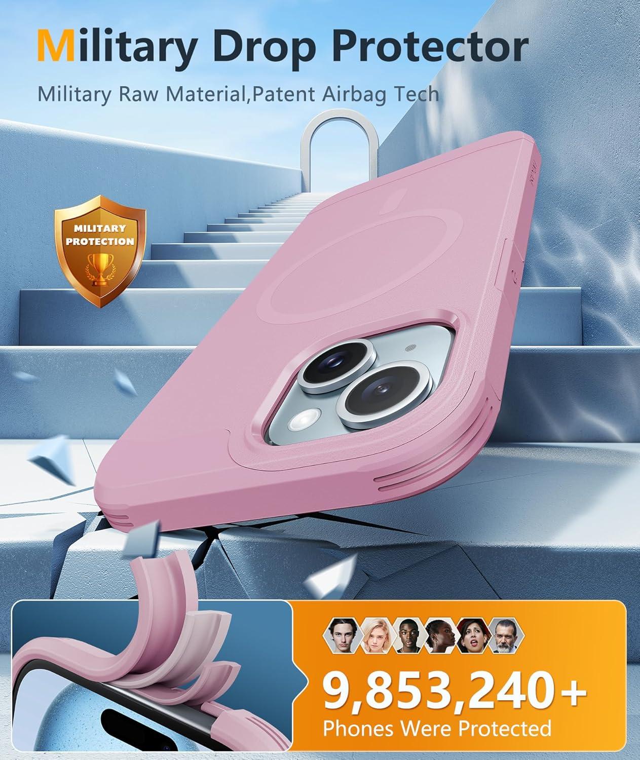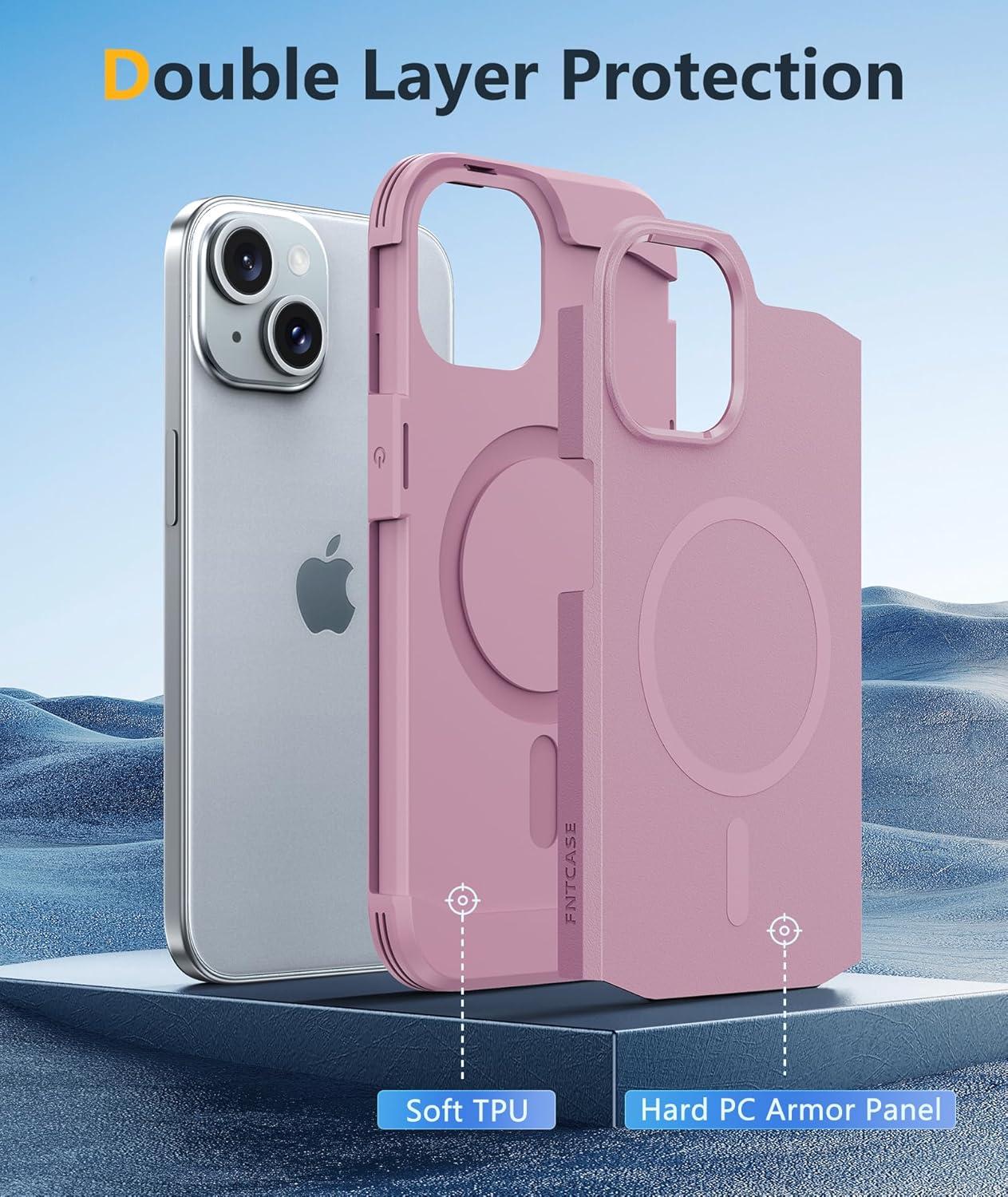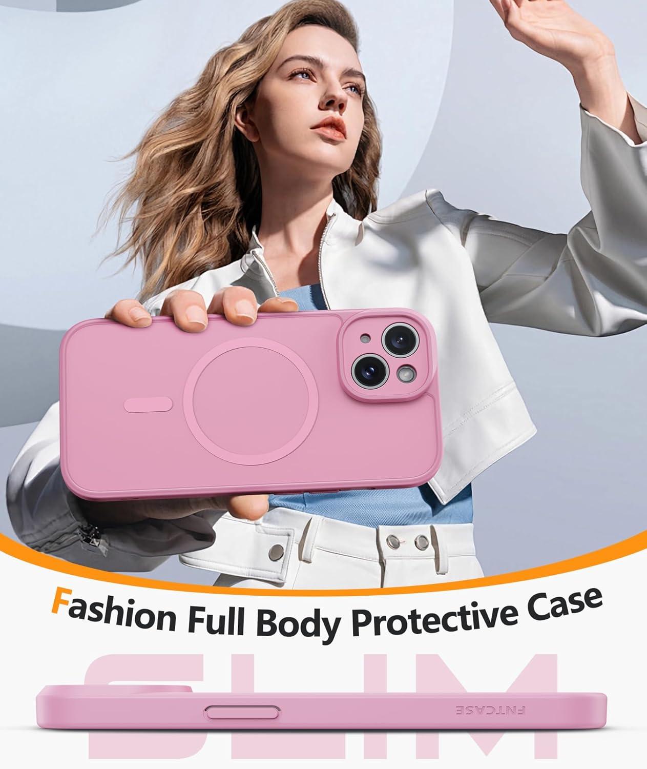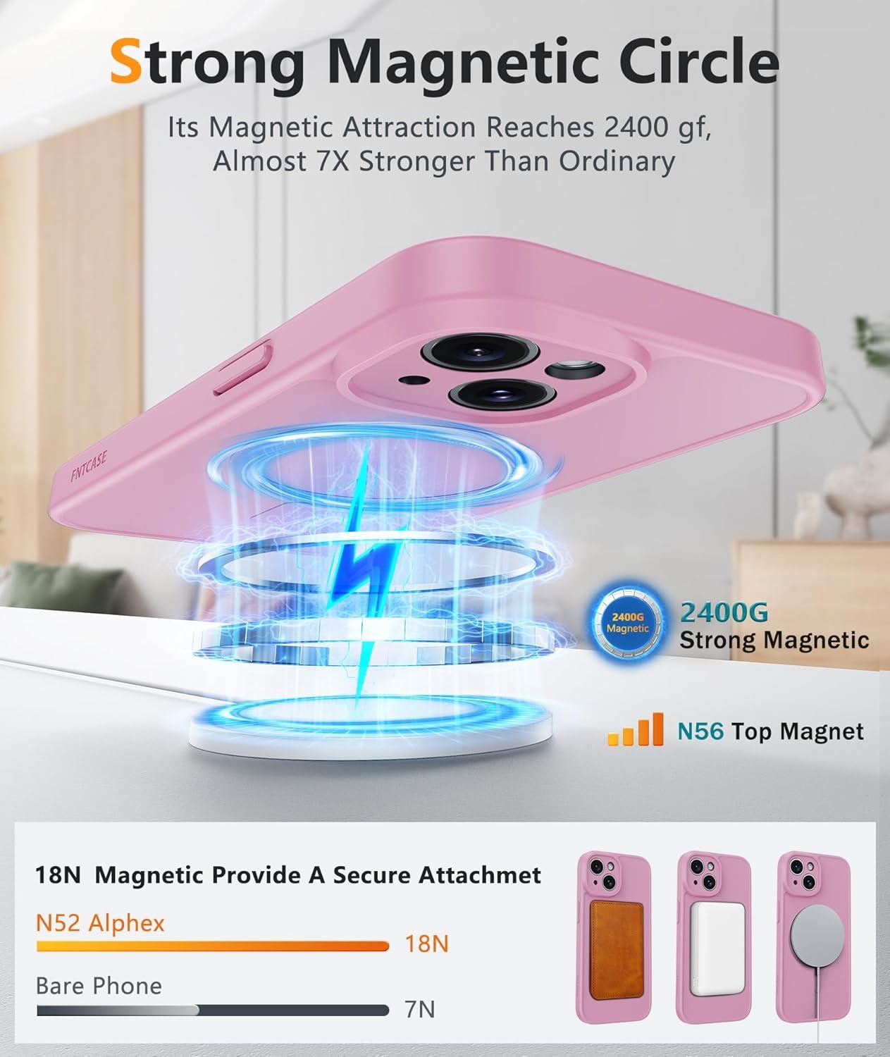 FNTCASE for iPhone 16e Phone Case: Magnetic Matte Textured Silicone Shockproof Military Grade Drop Protection Cell Phone Cover | Compatible with Magsafe | Slim Rugged Anti-Slip Protective Bumper(Pink)