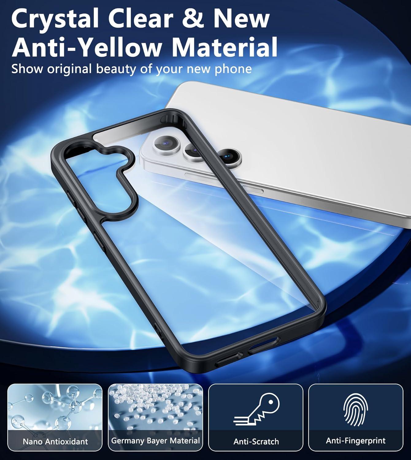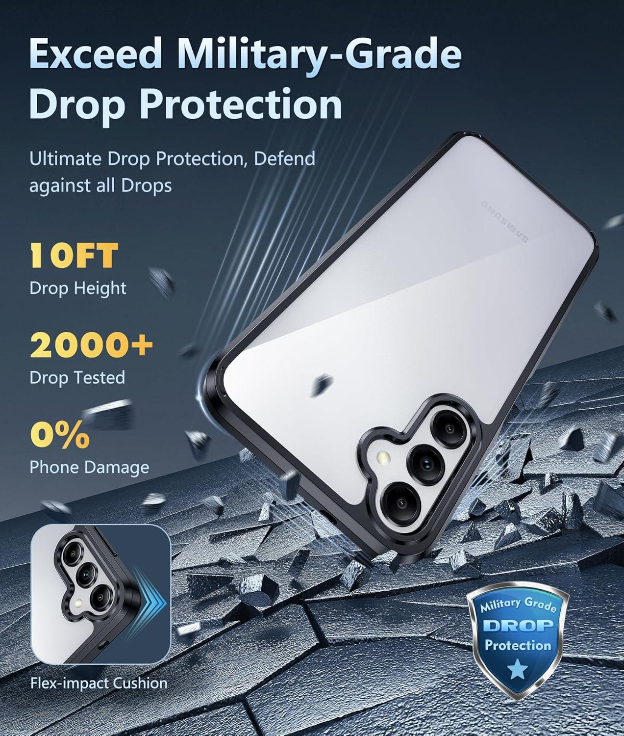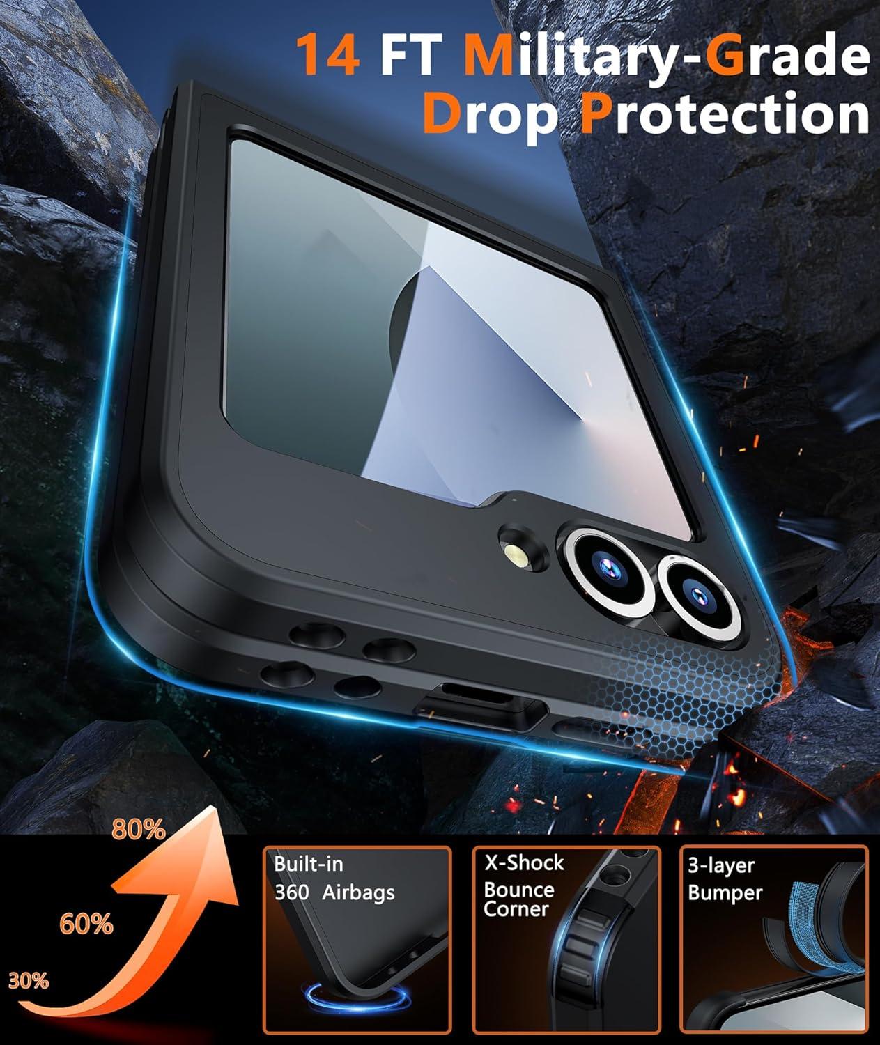 FNTCASE for Samsung-Galaxy Z-Flip-7 Clear Case: Military Grade Drop Protection Anti Yellowing Cell Phone Cover – Rugged Shockproof Protective Bumper Transparent Phonecase(Black)