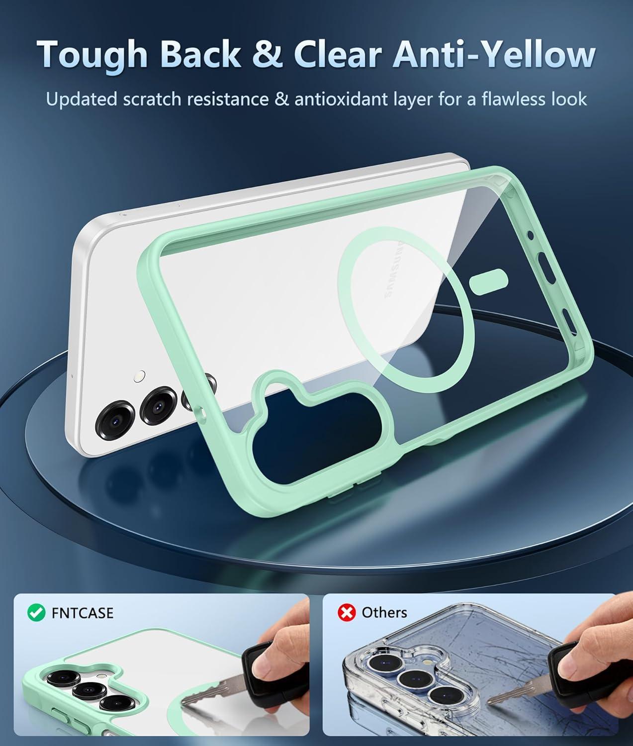 FNTCASE for Google Pixel 9a Case: Military Grade Drop Protection Anti Yellowing Cell Phone Cover – Rugged Shockproof Protective Bumper Transparent Cases(Clear)(Clear Magnetic)