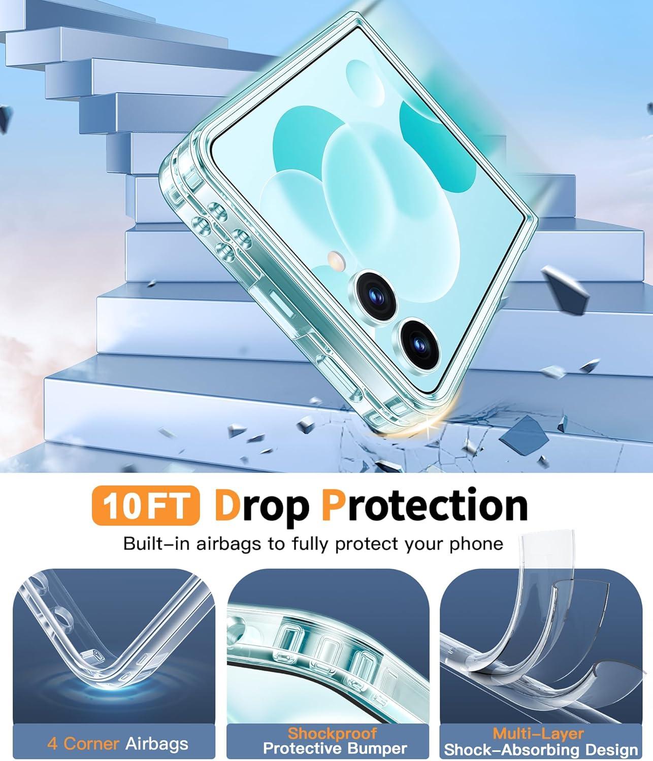 FNTCASE for Samsung-Galaxy Z-Flip-7 Clear Case: Military Grade Drop Protection Anti Yellowing Cell Phone Cover – Rugged Shockproof Protective Bumper Transparent Phonecase(Clear)