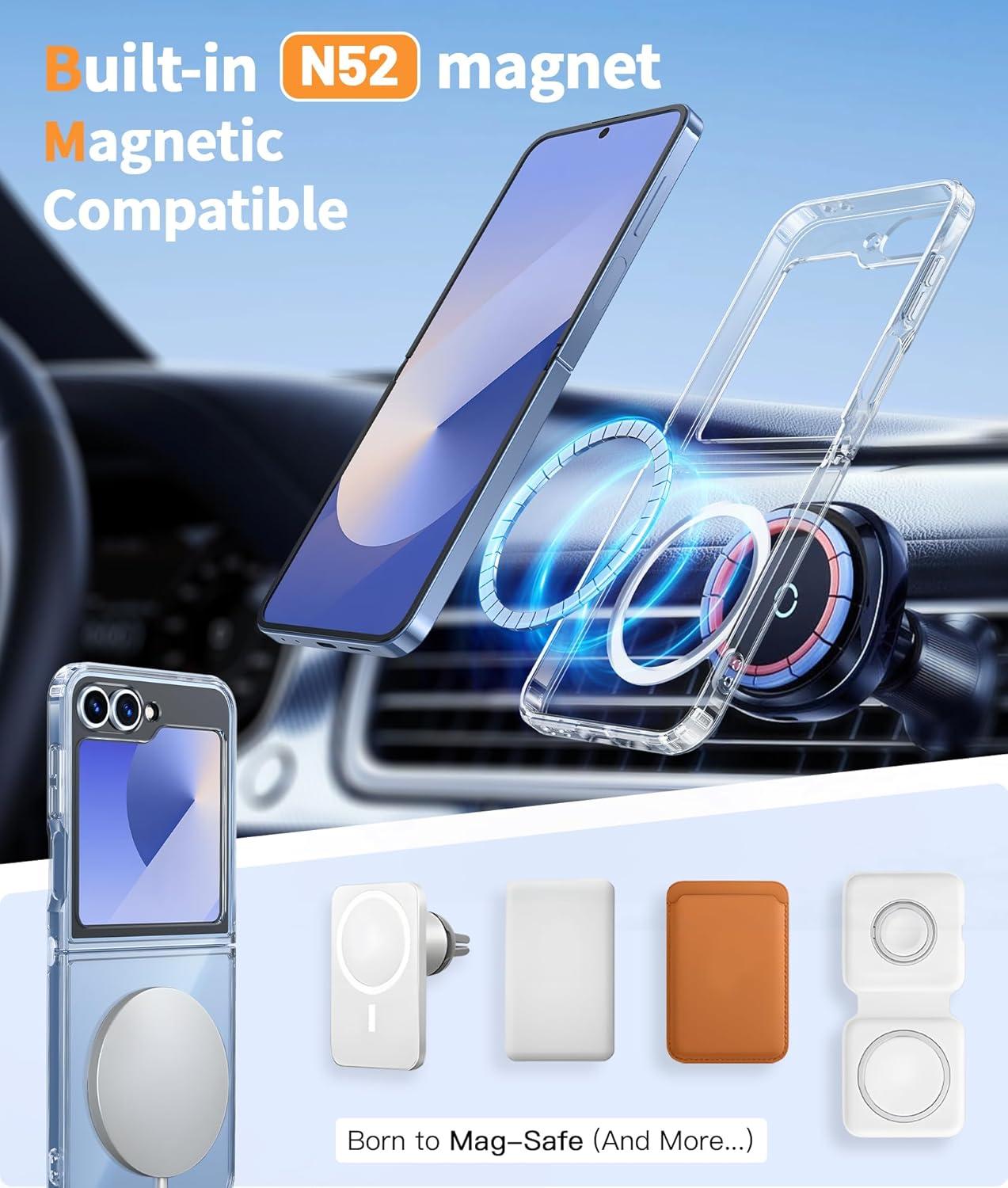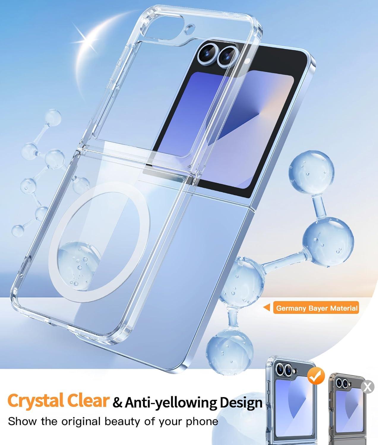 FNTCASE for Samsung-Galaxy Z-Flip-7 Clear Case: Military Grade Drop Protection Anti Yellowing Cell Phone Cover – Rugged Shockproof Protective Bumper Transparent Phonecase(Matte Blue Magnetic)