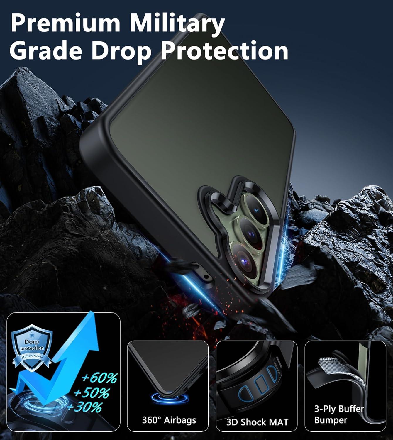 FNTCASE for Galaxy A16 5G Phone Case: Magnetic Matte Translucent Military Grade Drop Protection Cell Phone Cover – Slim Rugged Durable Shockproof Protective for Samsung A16 Cases – Black(Black Matte)