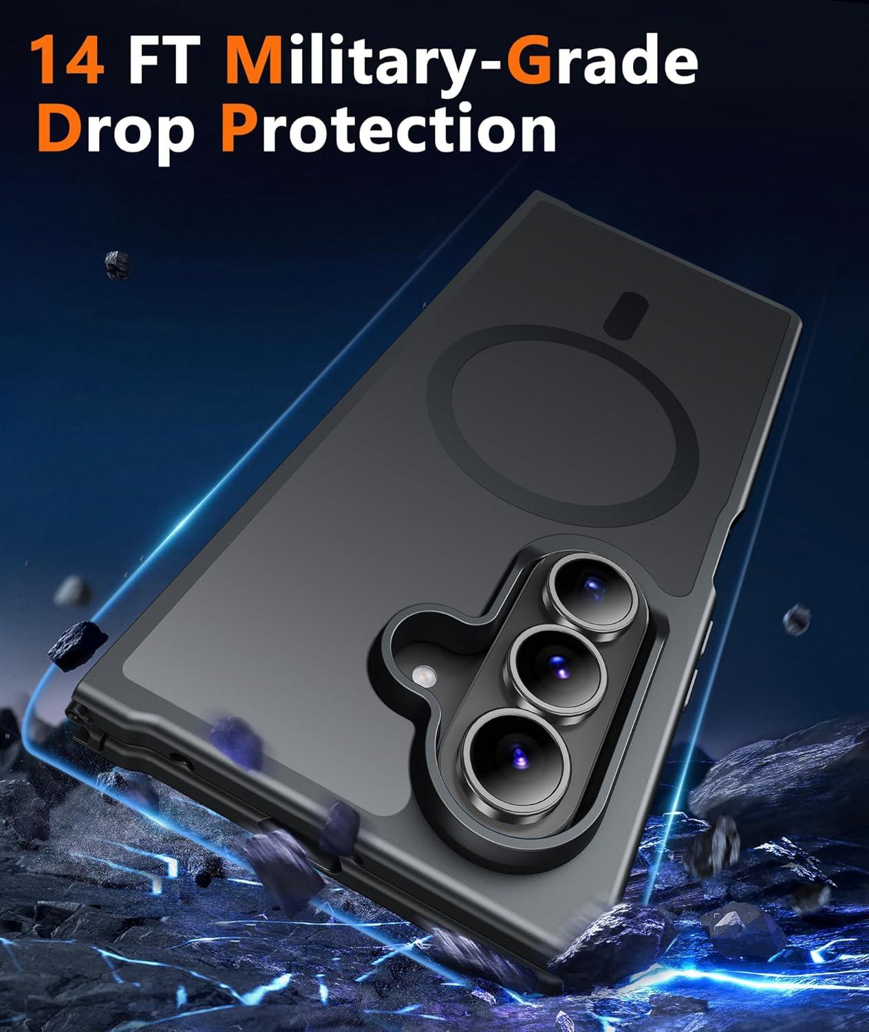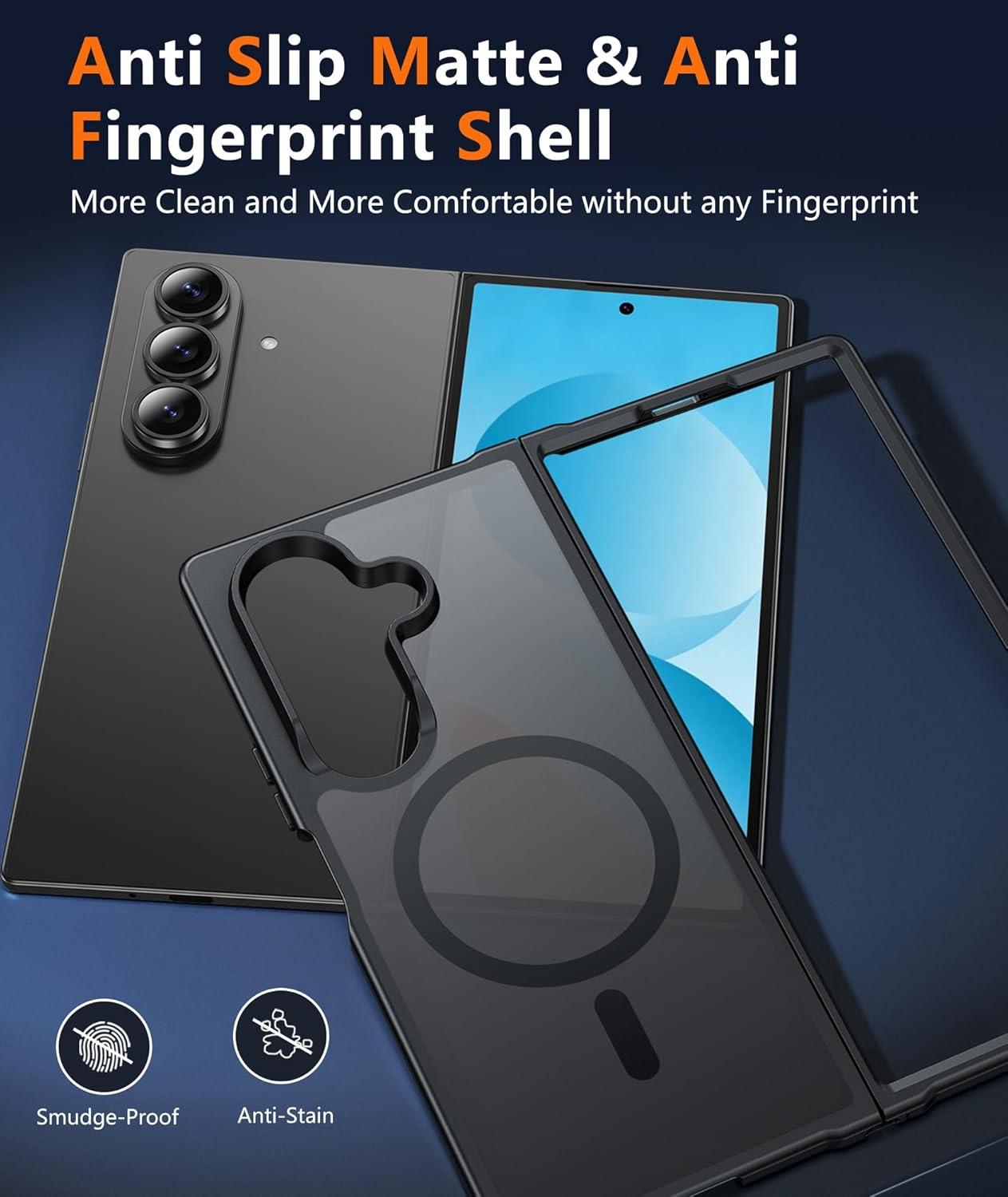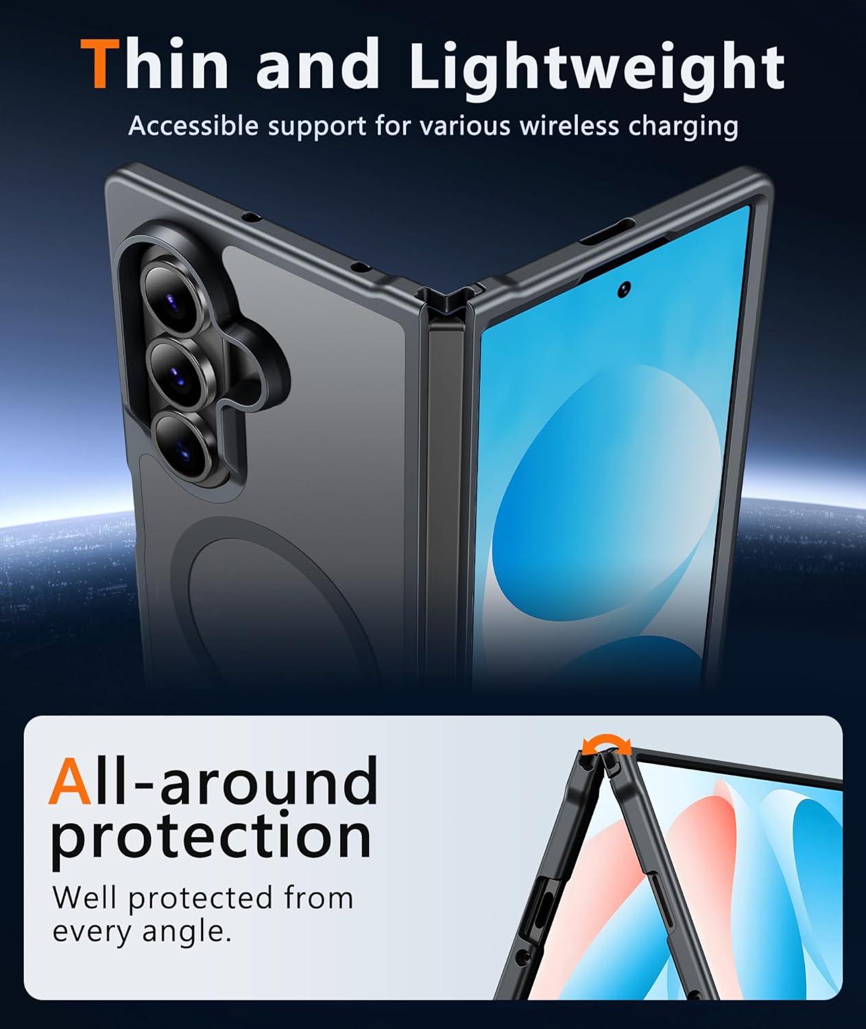 FNTCASE for Samsung-Galaxy Z-Fold-7 Magnetic Case: Translucent Matte Textured Military Grade Drop Protection Cell Phone Cover – Slim Rugged Durable Shockproof Protective Bumper Cases (Black 8.0 inch)(Black)