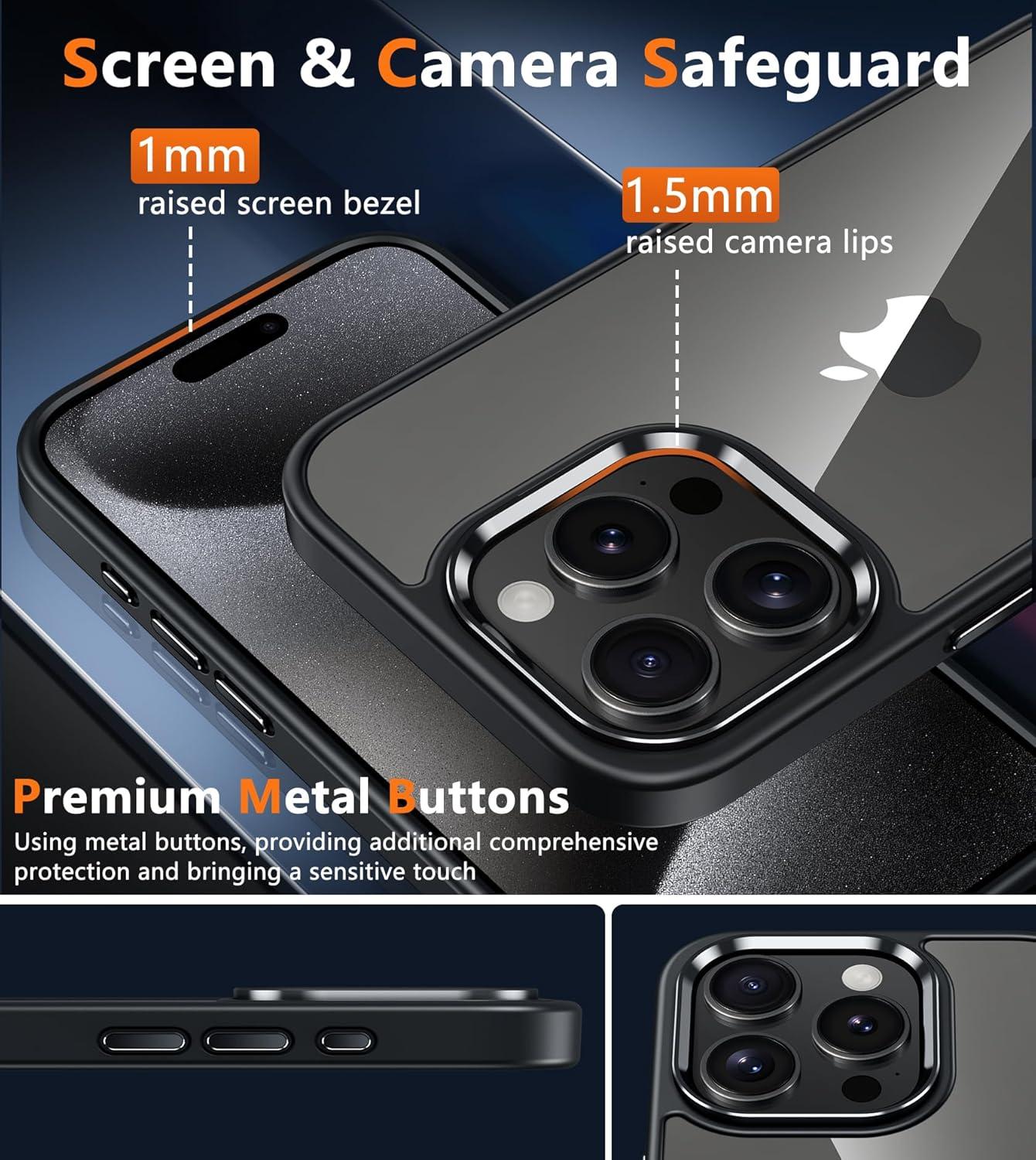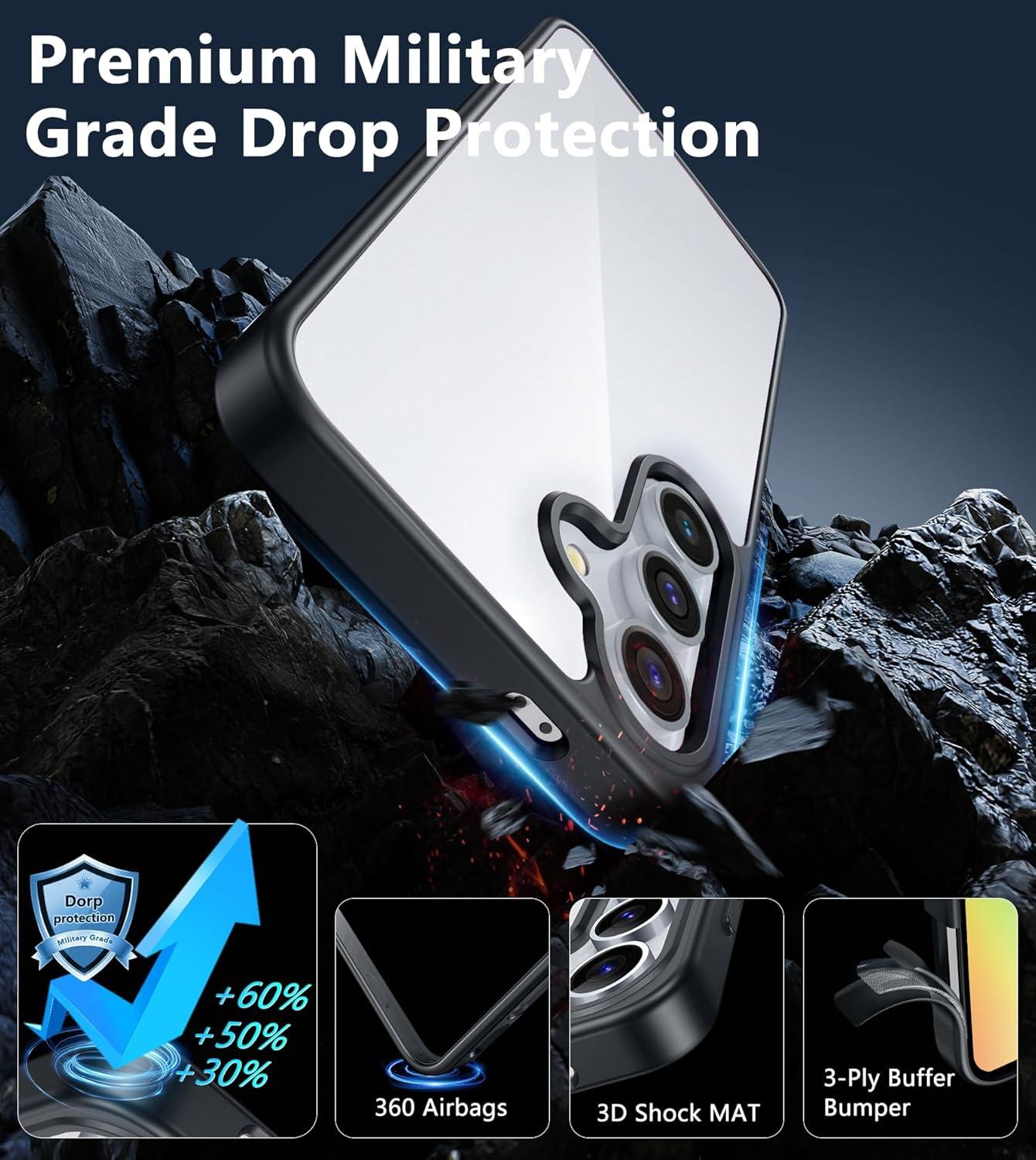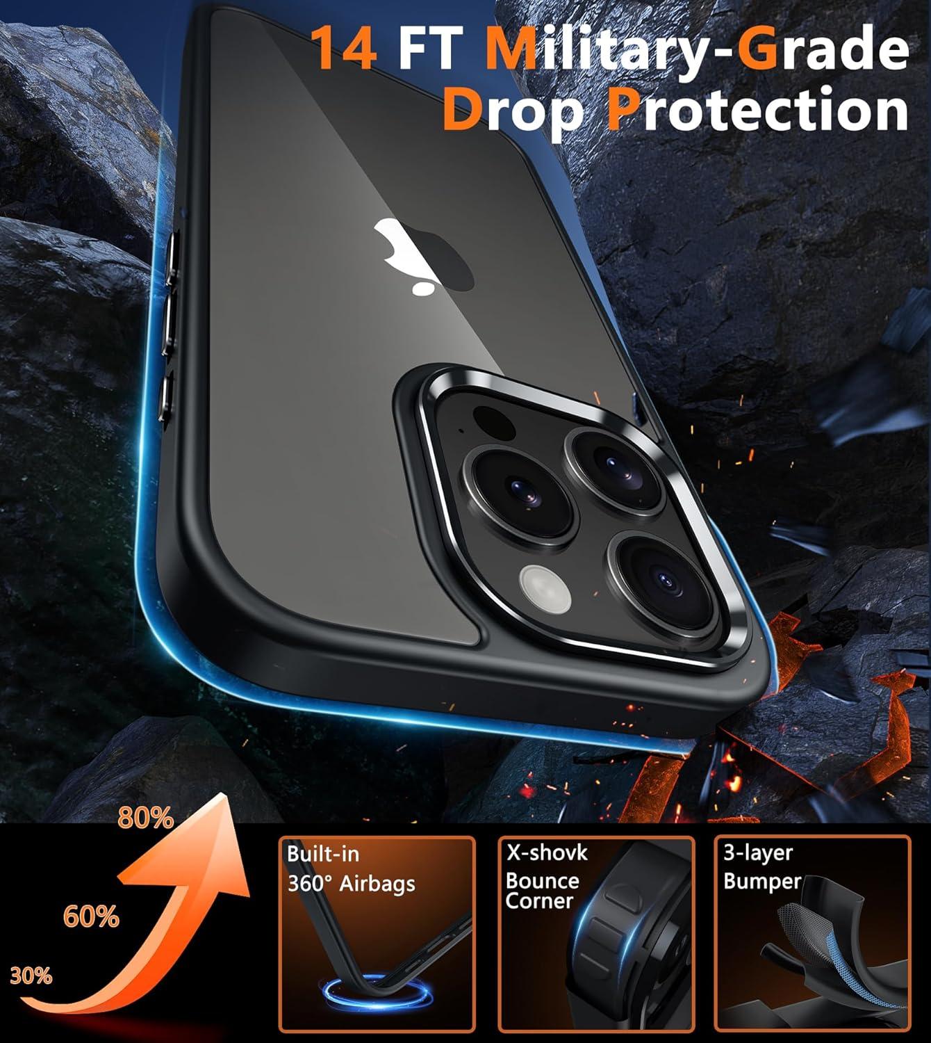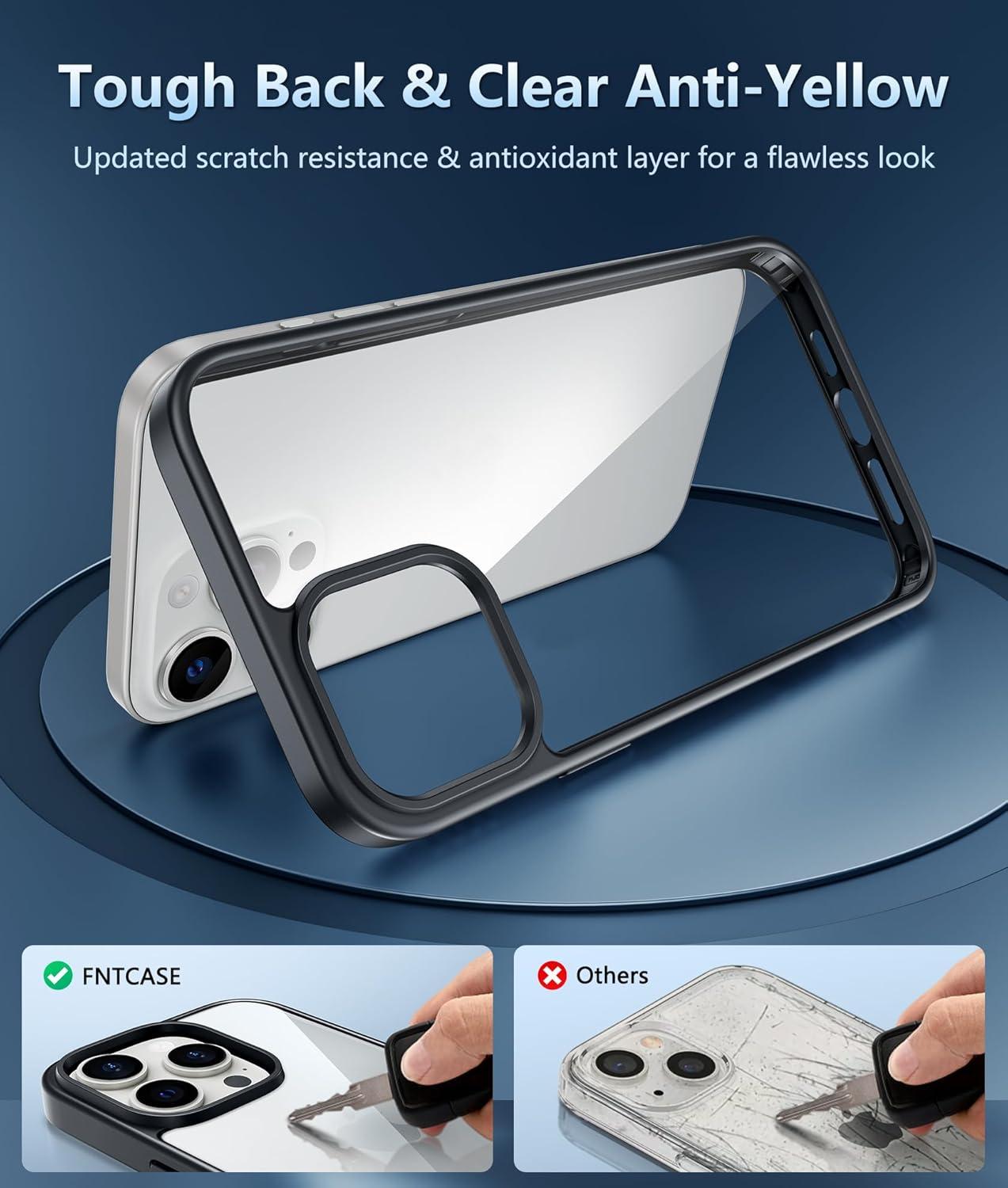 FNTCASE for iPhone 16 Pro Case: Clear Phone Cases Compatible with Magsafe Slim Anti Yellowing Military Grade Drop Protection Rugged Shockproof Protective Transparent Cell Phone Cover (B-Clear)(D-Black)
