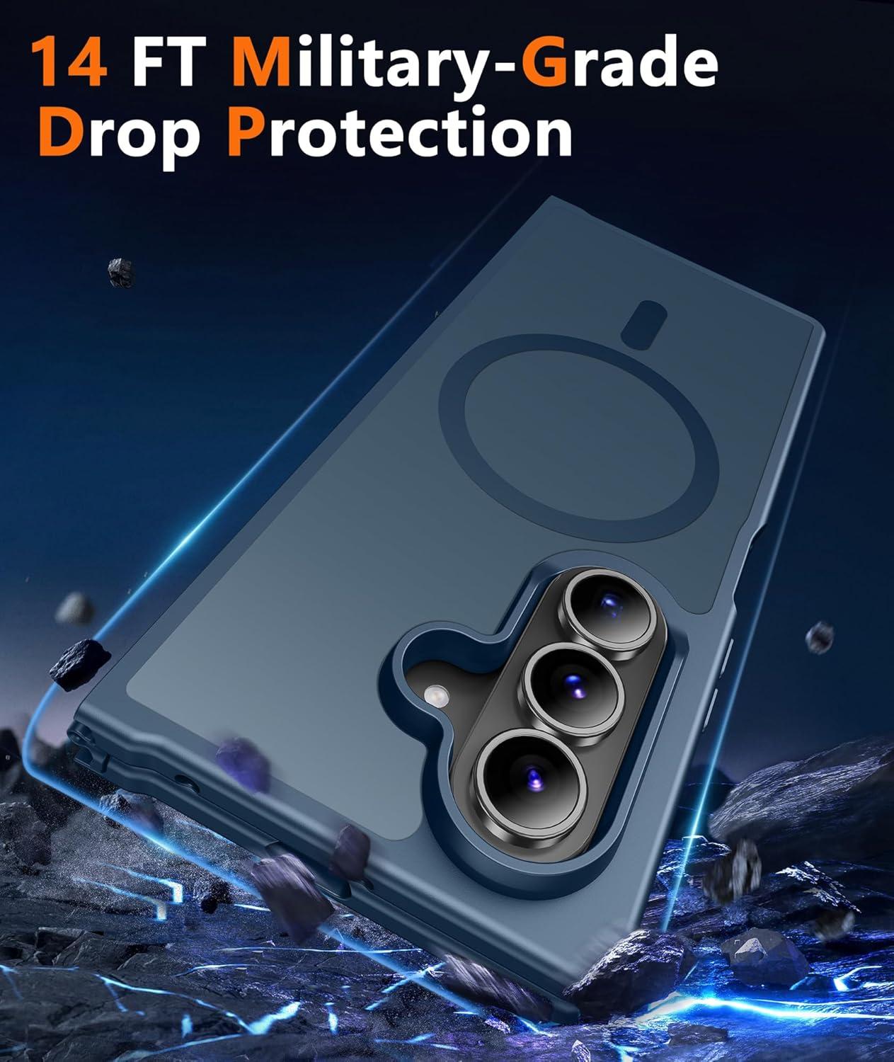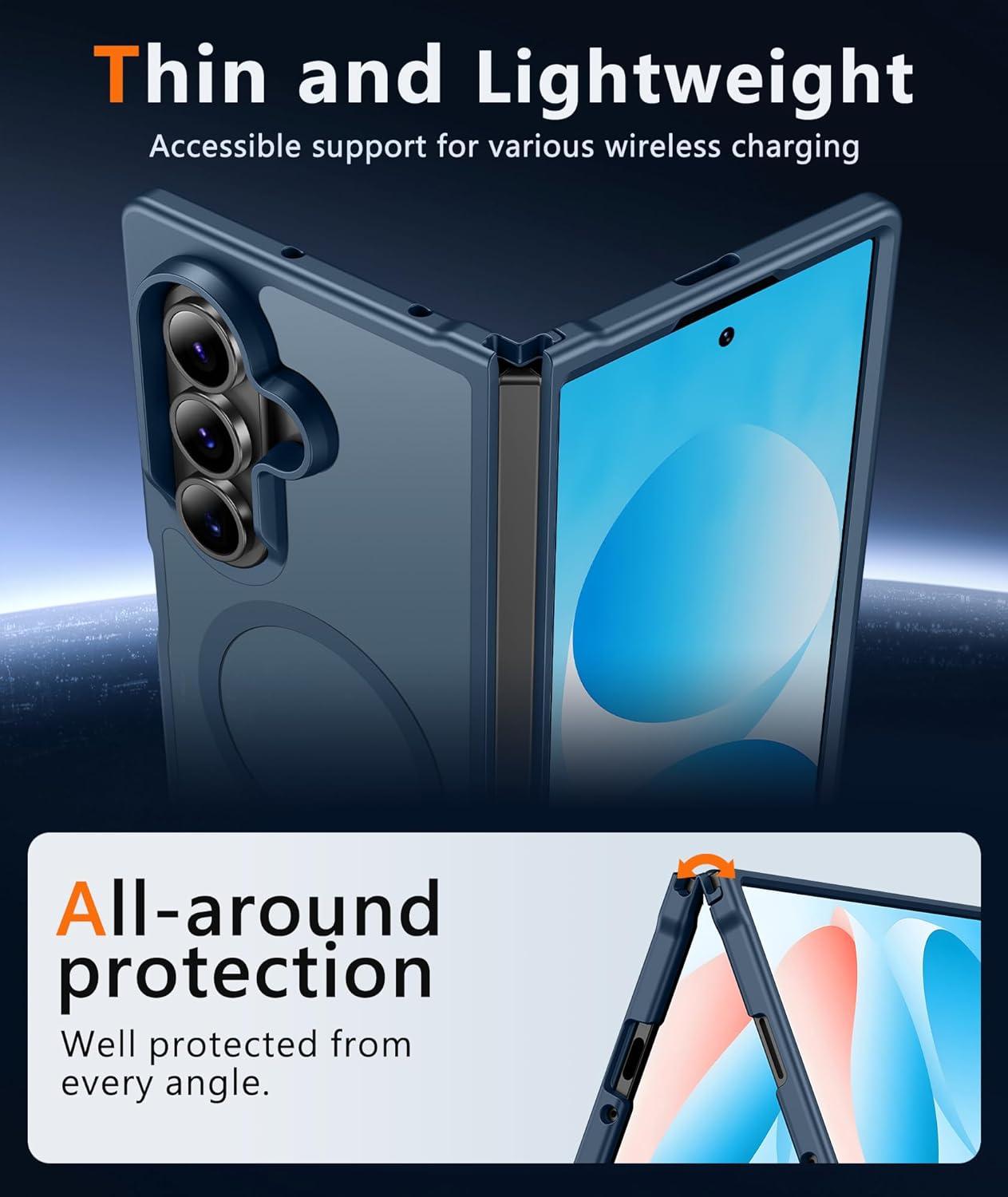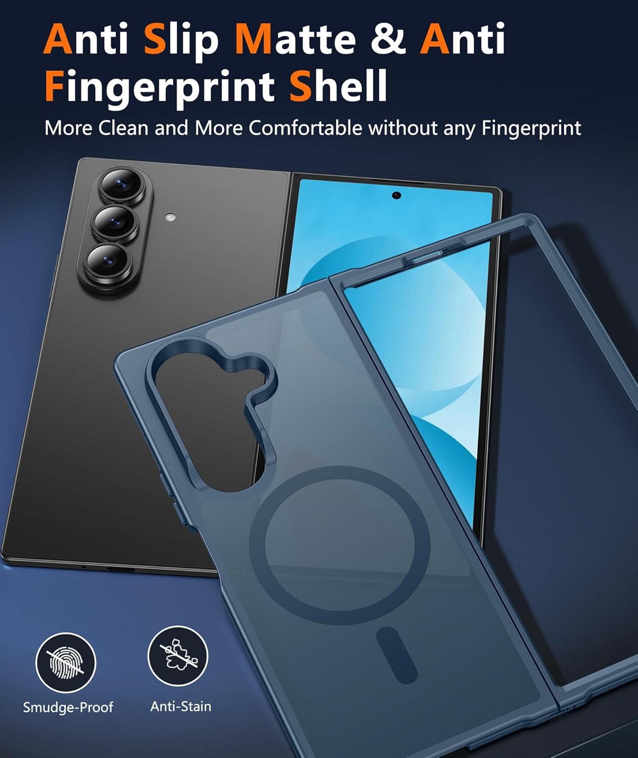FNTCASE for Samsung-Galaxy Z-Fold-7 Magnetic Case: Translucent Matte Textured Military Grade Drop Protection Cell Phone Cover – Slim Rugged Durable Shockproof Protective Bumper Cases (Black 8.0 inch)(Blue)