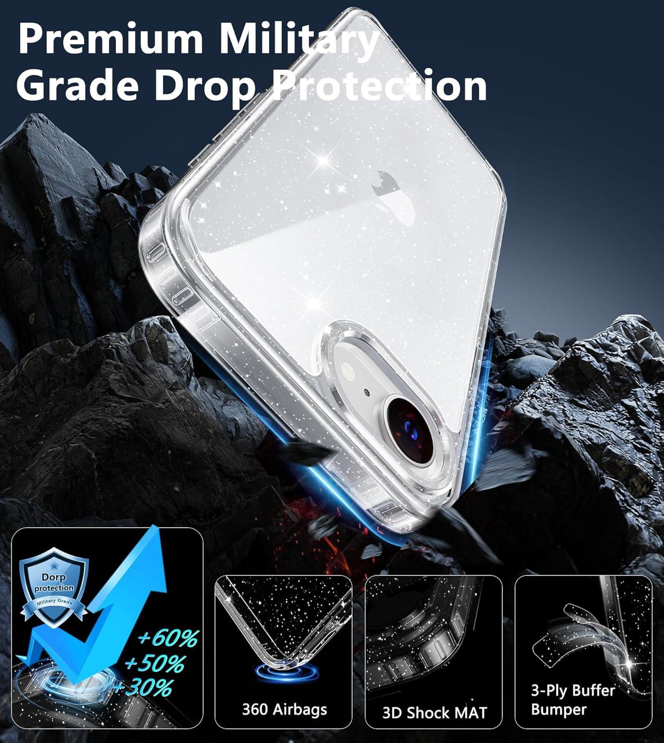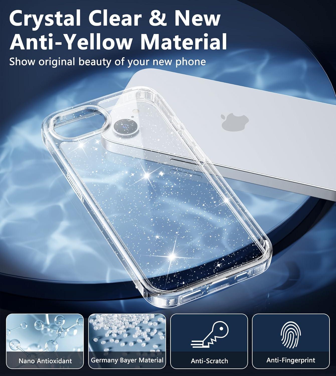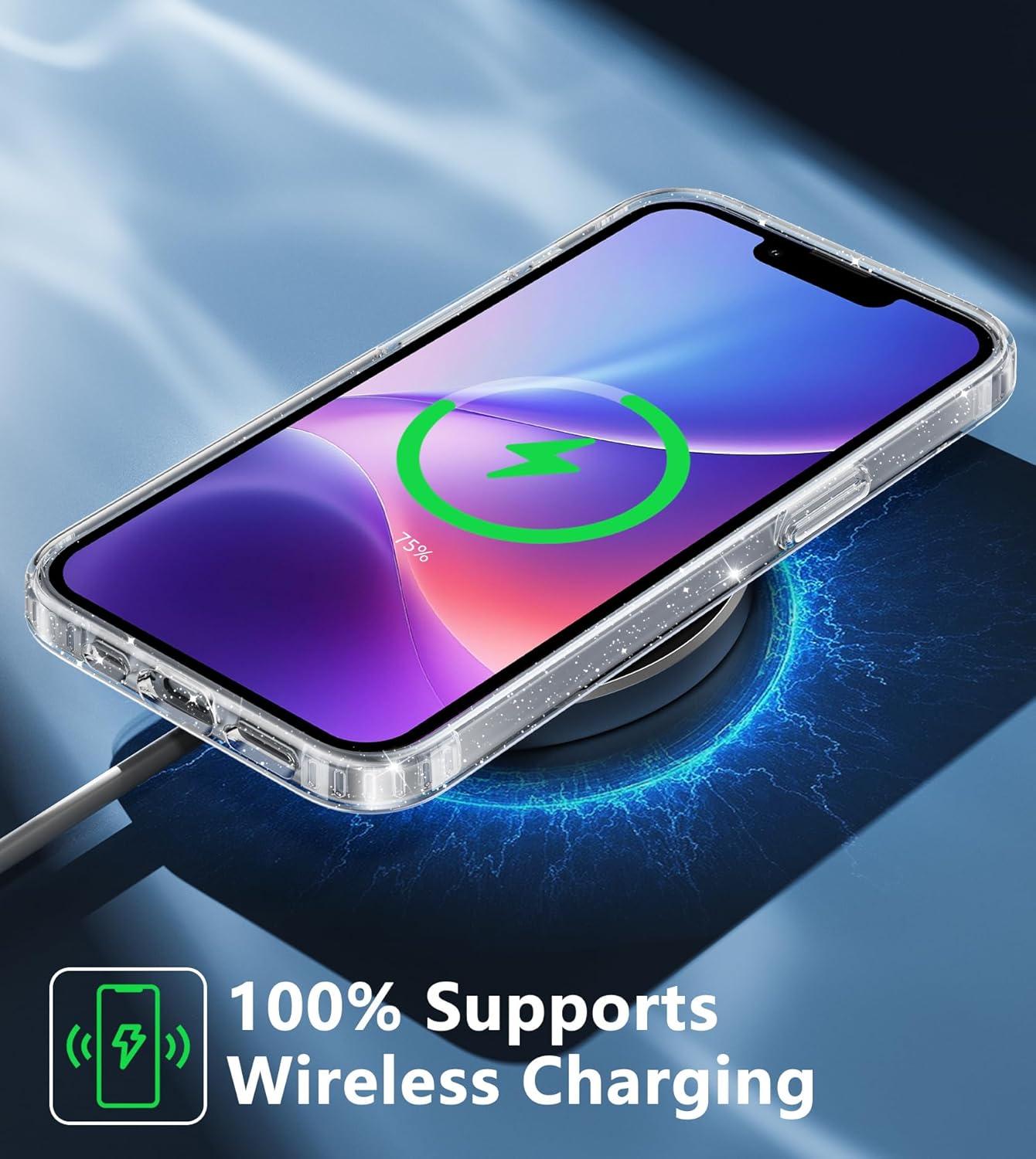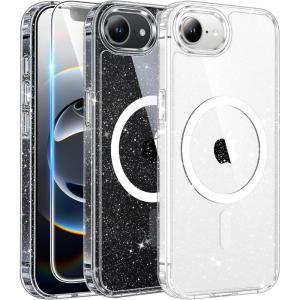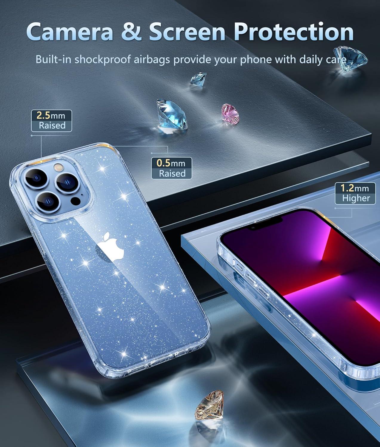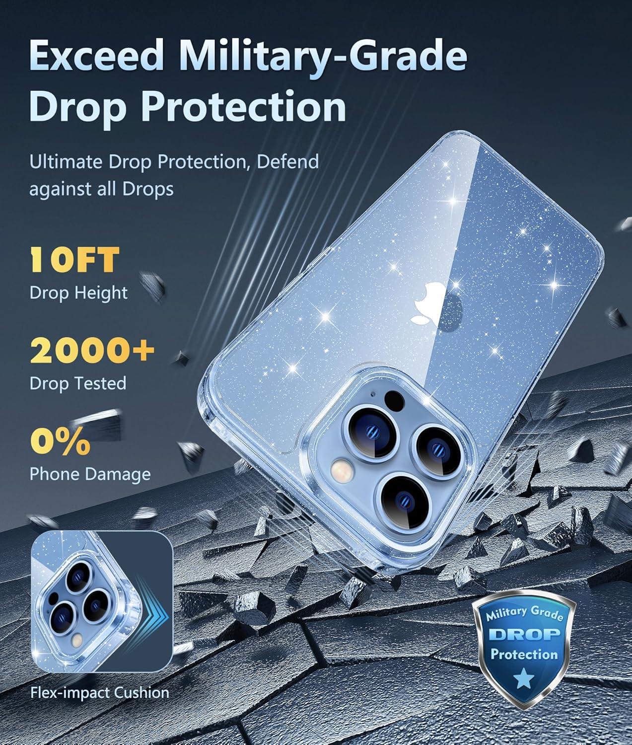 FNTCASE for iPhone 16 Pro Case: Clear Phone Cases Compatible with Magsafe Slim Anti Yellowing Military Grade Drop Protection Rugged Shockproof Protective Transparent Cell Phone Cover (B-Clear)(L-Glitter)