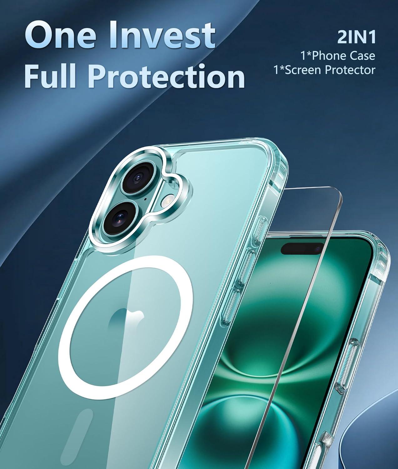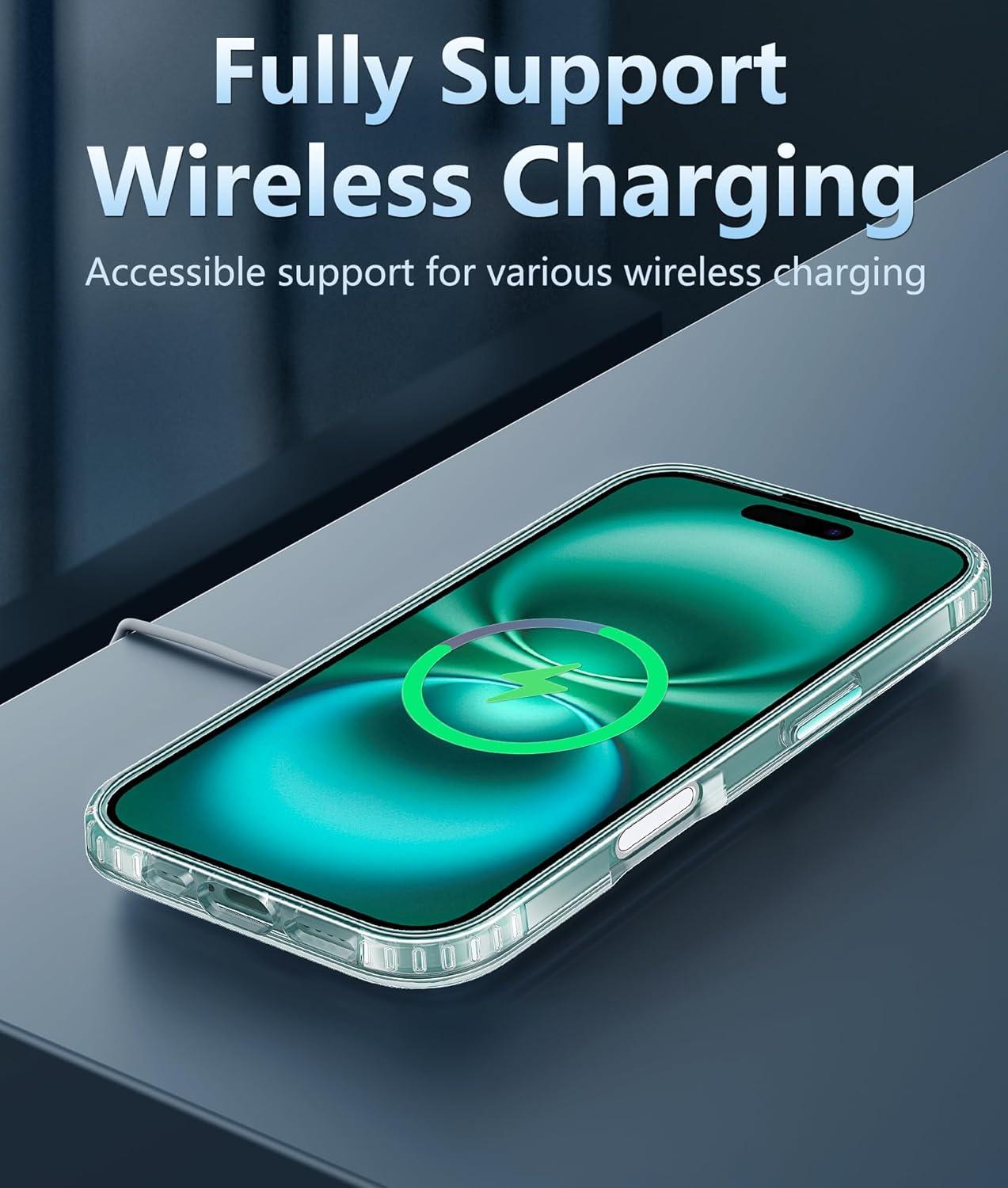 FNTCASE for iPhone 16 Pro Case: Clear Phone Cases Compatible with Magsafe Slim Anti Yellowing Military Grade Drop Protection Rugged Shockproof Protective Transparent Cell Phone Cover (B-Clear)(D-Teal)