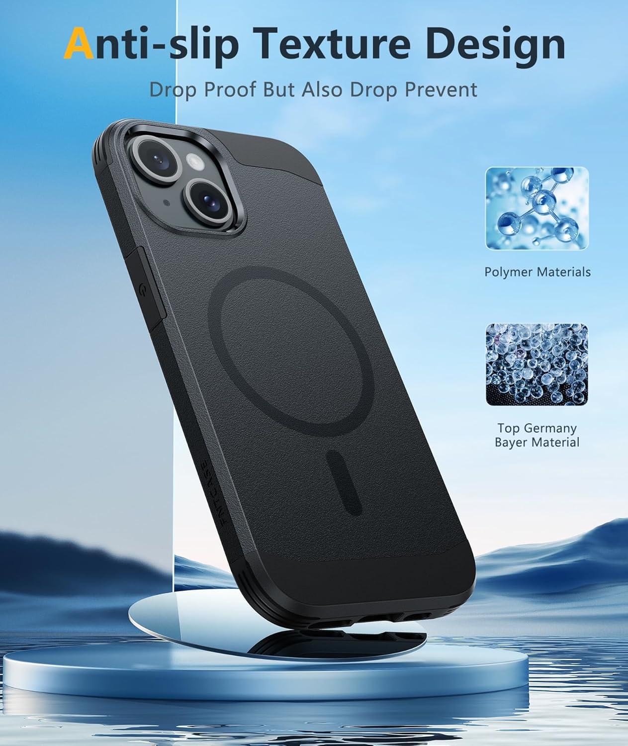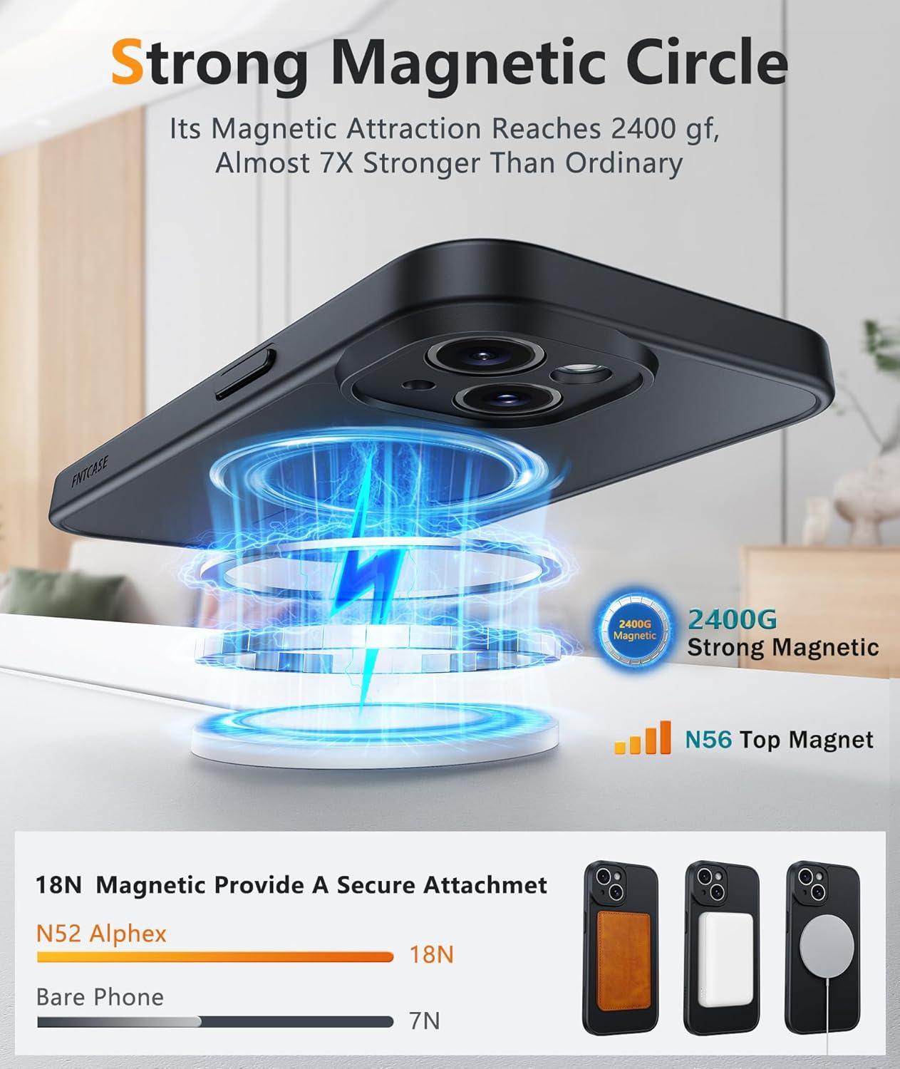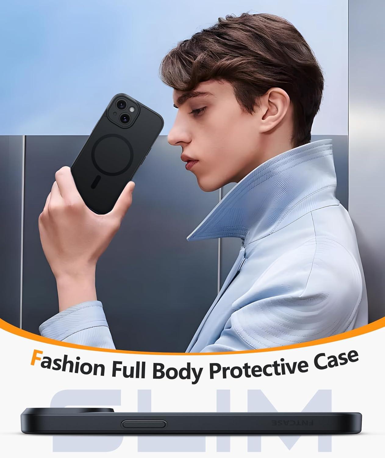 FNTCASE for iPhone 16e Phone Case: Magnetic Matte Textured Silicone Shockproof Military Grade Drop Protection Cell Phone Cover | Compatible with Magsafe | Slim Rugged Anti-Slip Protective Bumper(Matte Black)