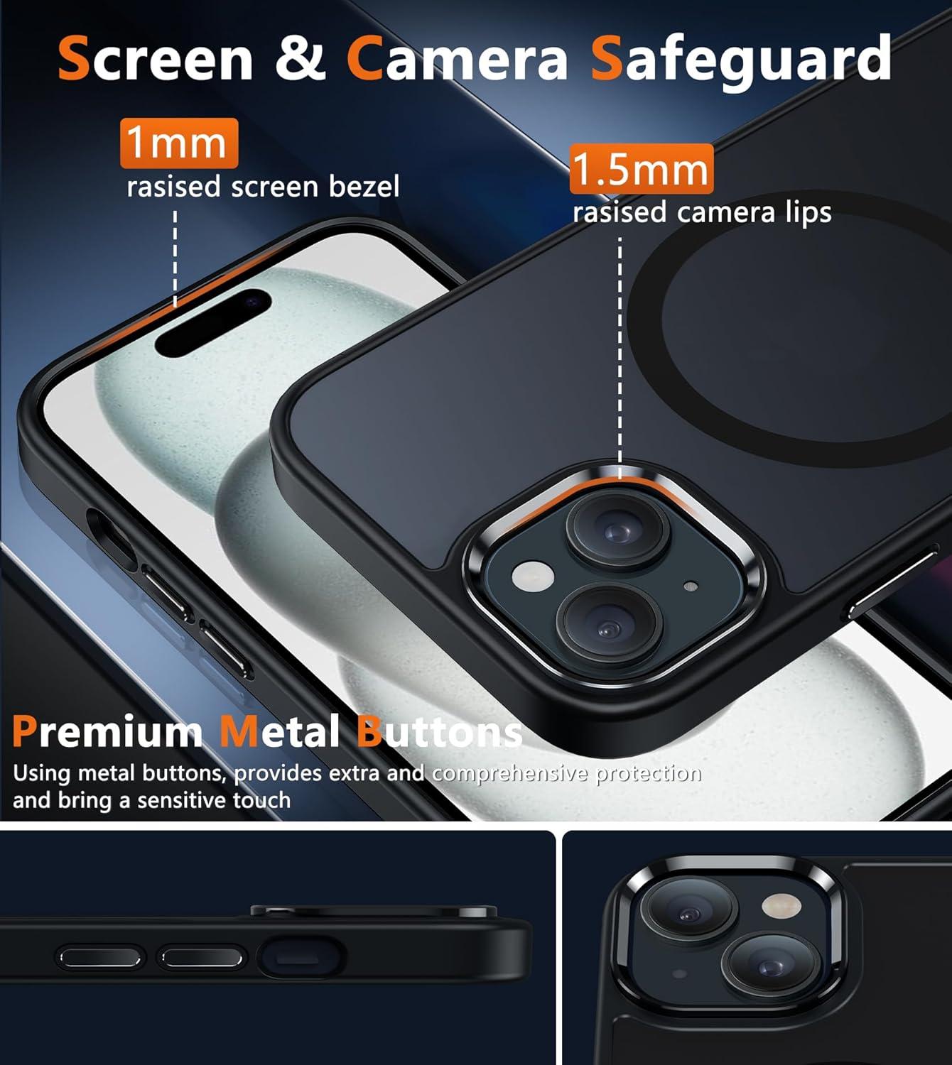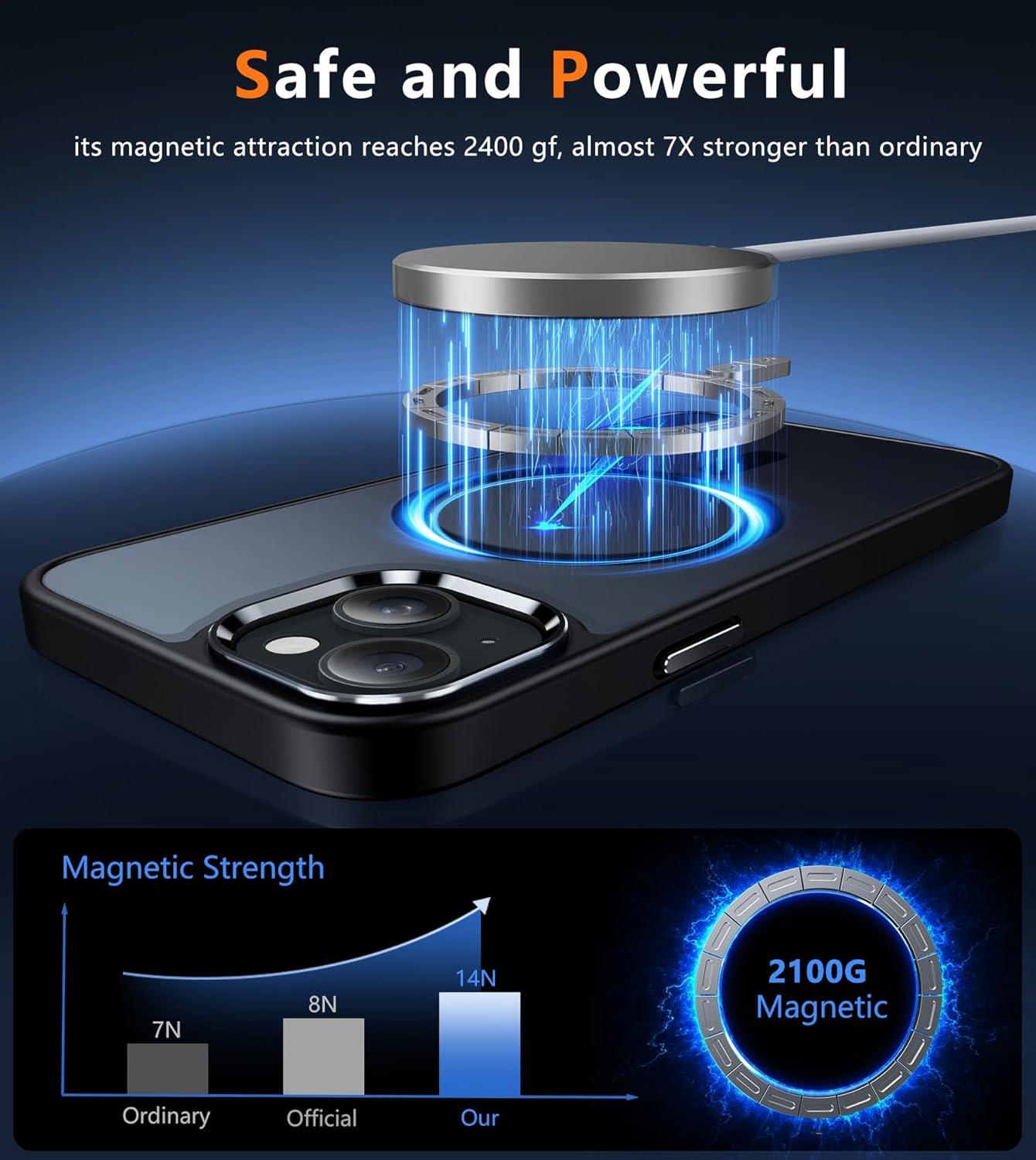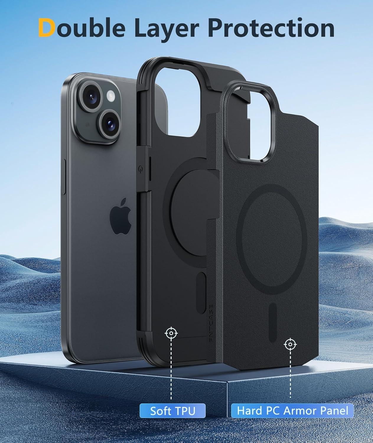 FNTCASE for iPhone 16e Phone Case: Magnetic Matte Textured Silicone Shockproof Military Grade Drop Protection Cell Phone Cover | Compatible with Magsafe | Slim Rugged Anti-Slip Protective Bumper(Matte Black)