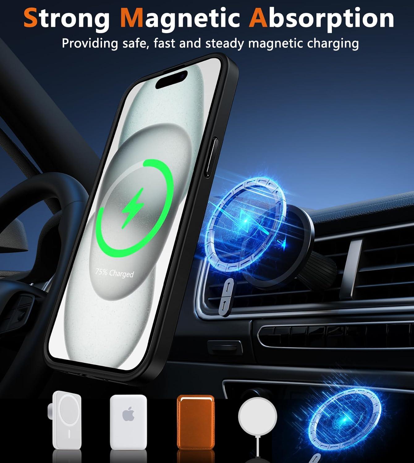 FNTCASE for iPhone 16e Phone Case: Magnetic Matte Textured Silicone Shockproof Military Grade Drop Protection Cell Phone Cover | Compatible with Magsafe | Slim Rugged Anti-Slip Protective Bumper(Black)