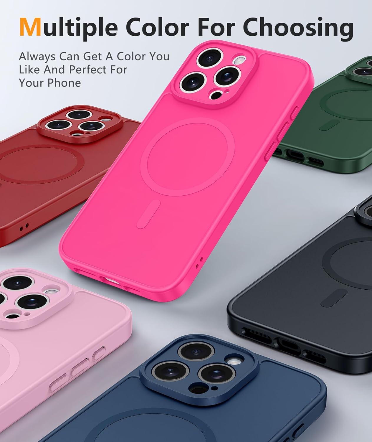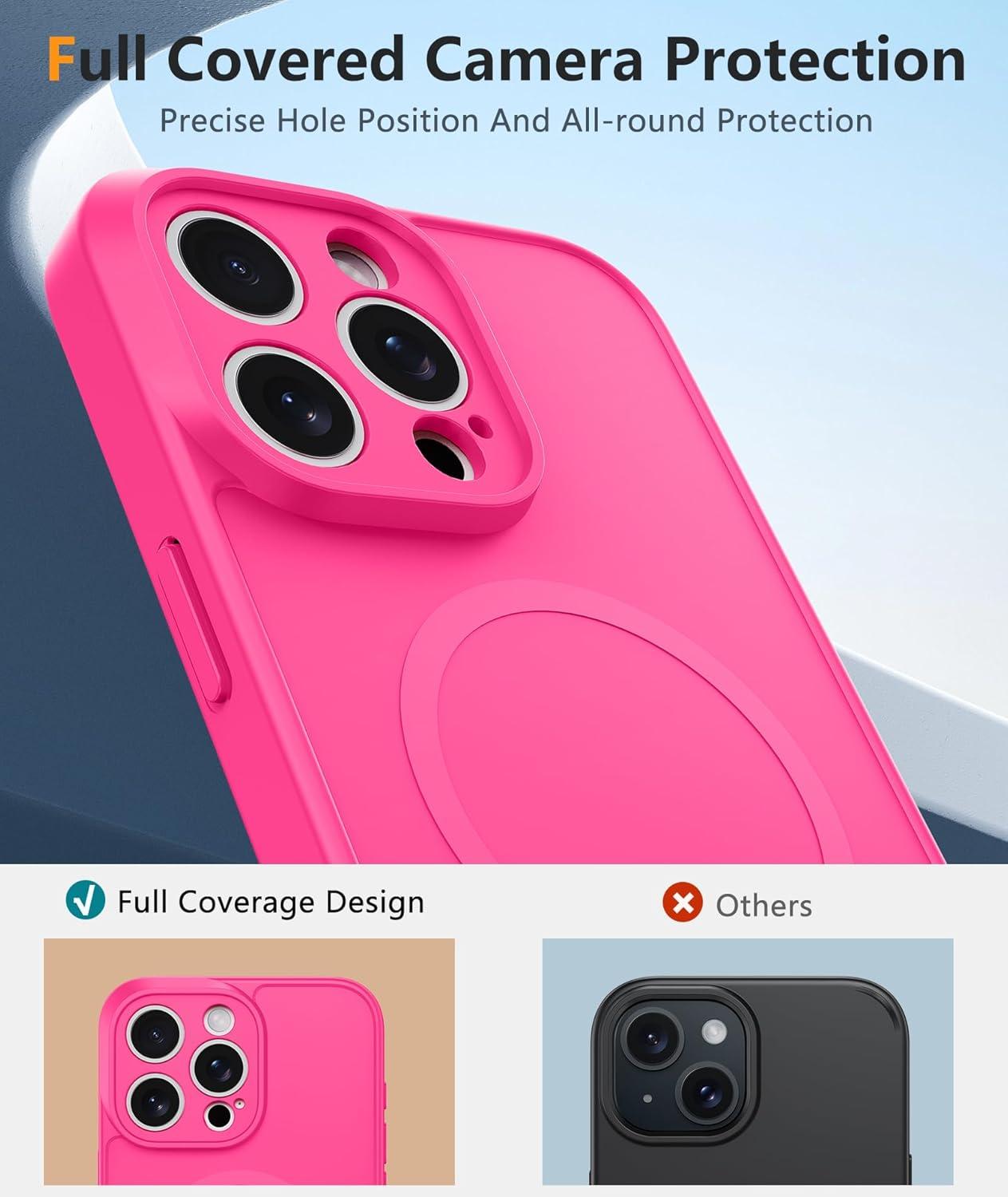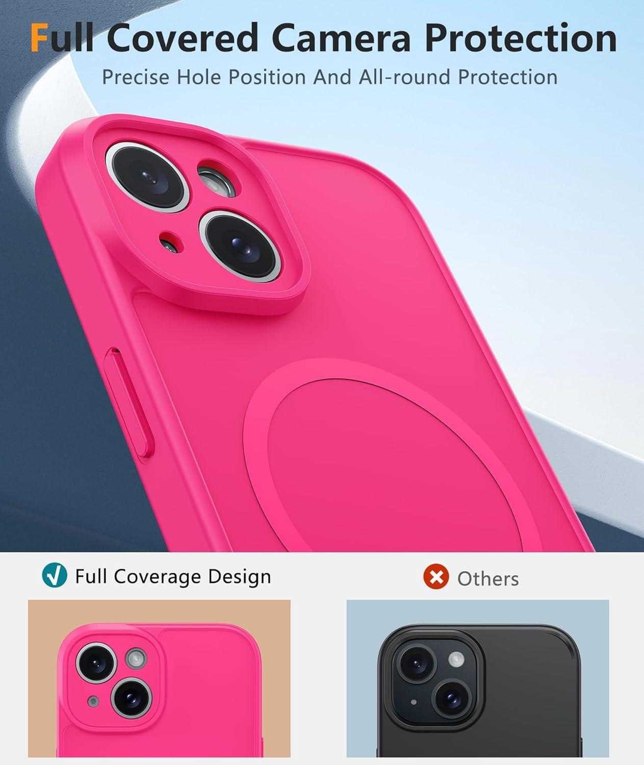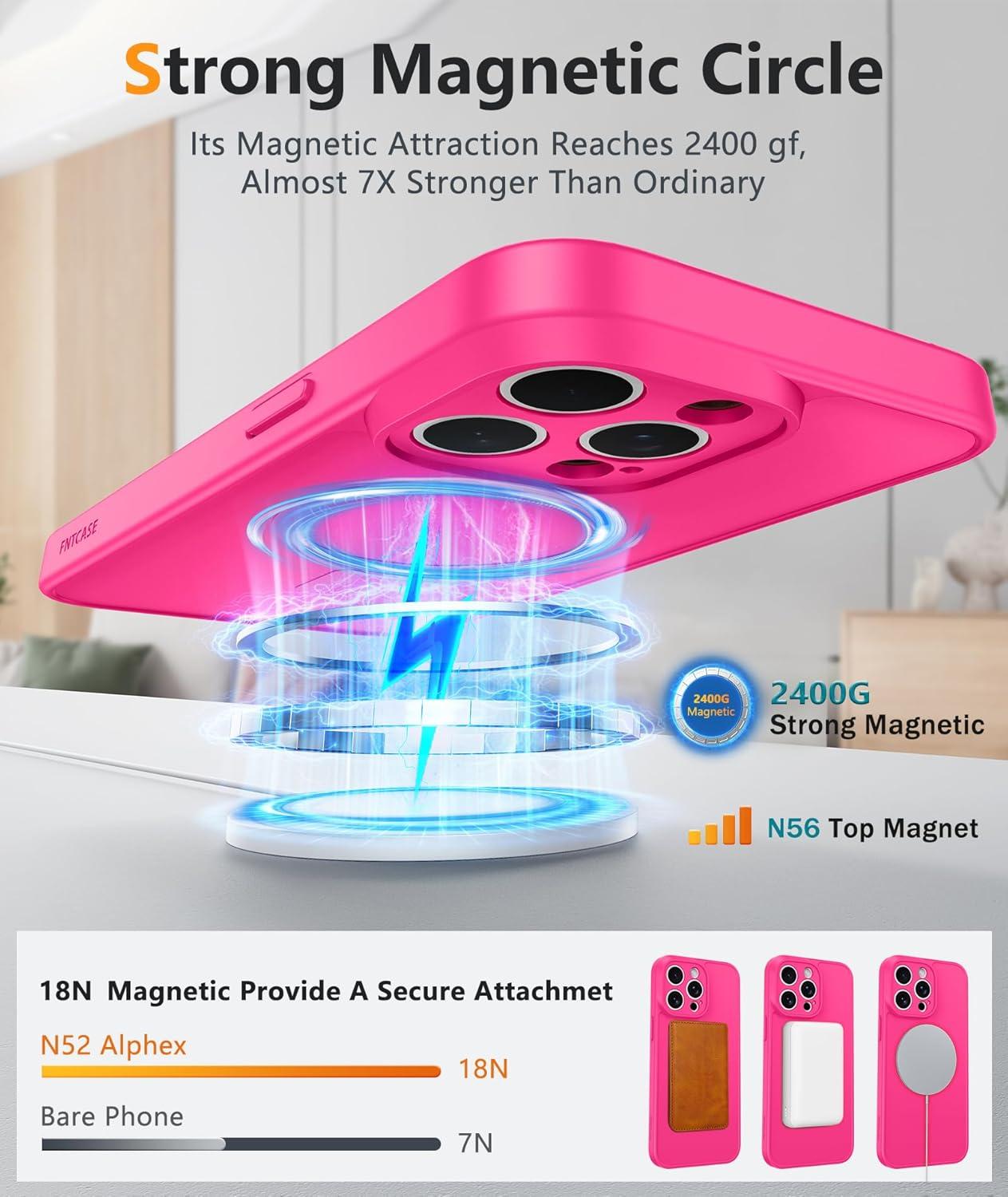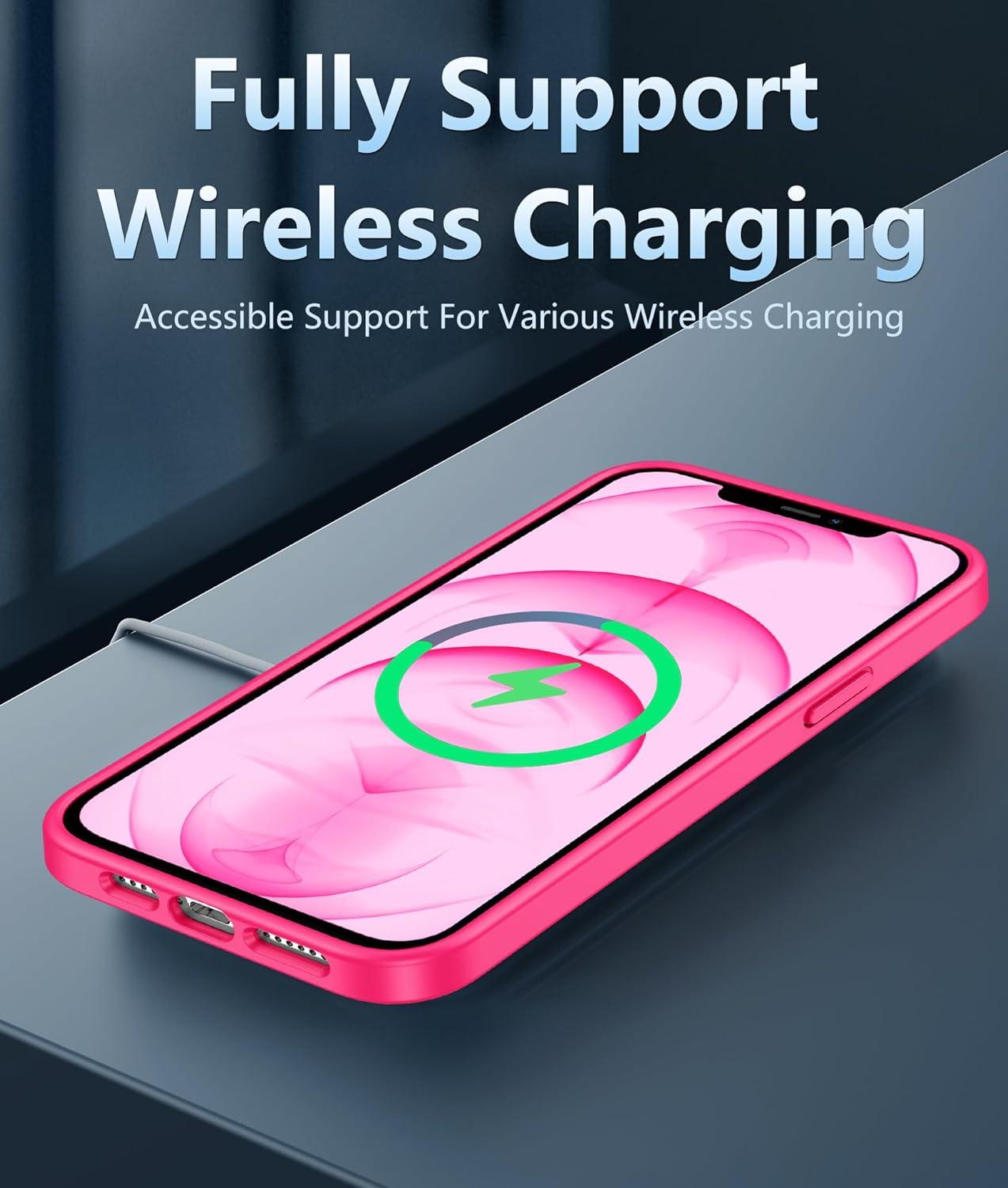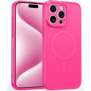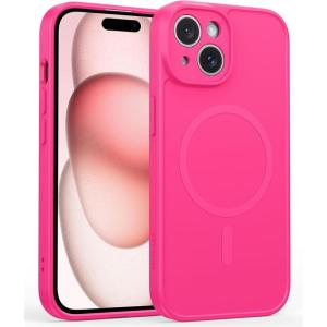 FNTCASE for iPhone 16e Phone Case: Magnetic Matte Textured Silicone Shockproof Military Grade Drop Protection Cell Phone Cover | Compatible with Magsafe | Slim Rugged Anti-Slip Protective Bumper(Hot Pink)
