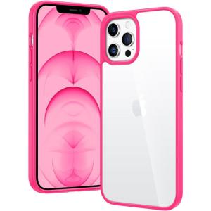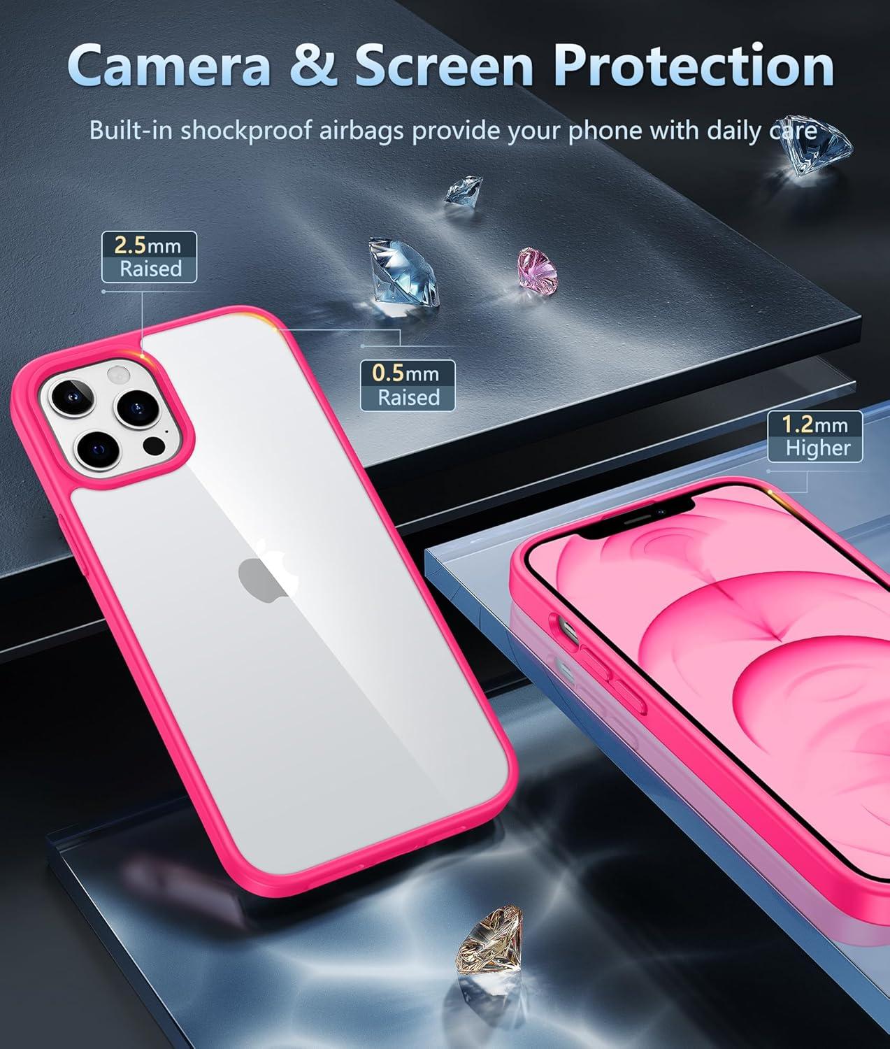 FNTCASE for iPhone 16 Pro Case: Clear Phone Cases Compatible with Magsafe Slim Anti Yellowing Military Grade Drop Protection Rugged Shockproof Protective Transparent Cell Phone Cover (B-Clear)(D-Hot Pink Soild)