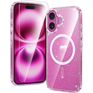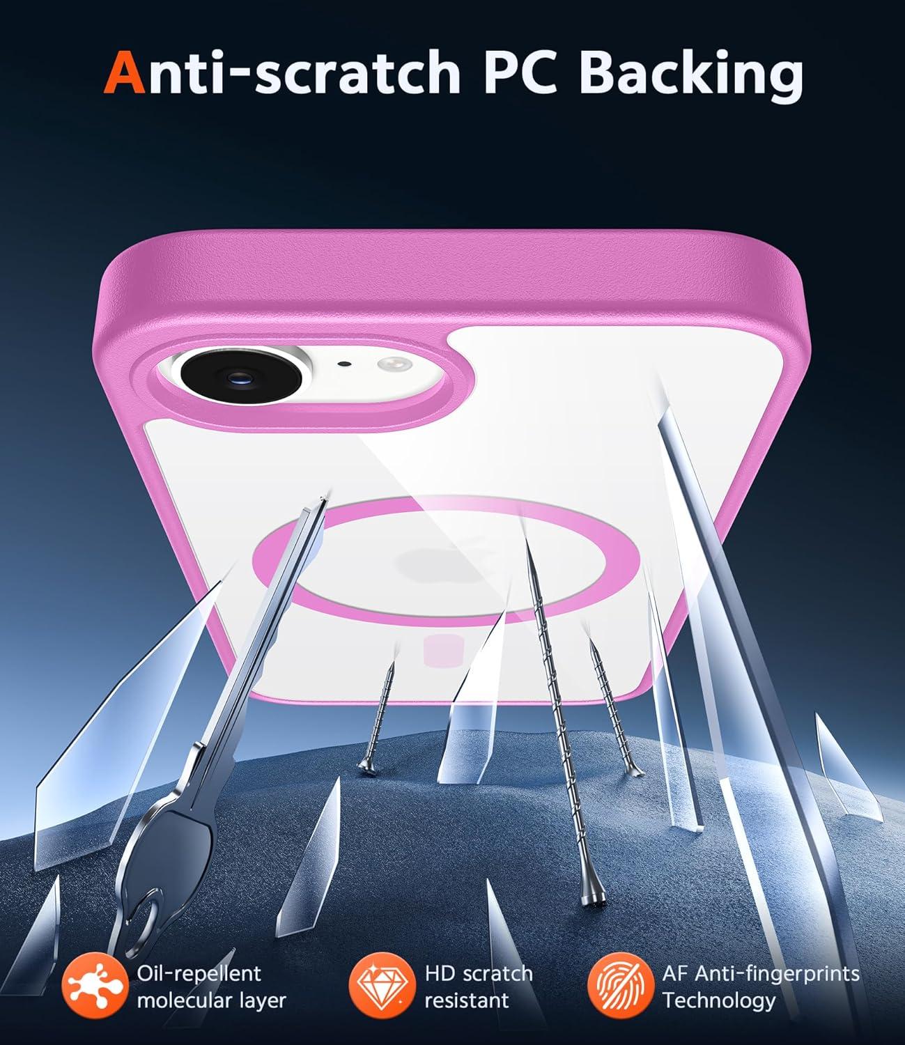 FNTCASE for iPhone 16e Case Clear: Magnetic Phone Cases with Screen Protector Drop Proof Compatible with Magsafe Slim Anti Yellowing Rugged Shockproof Protective Transparent Cell Cover (B-Pink)
