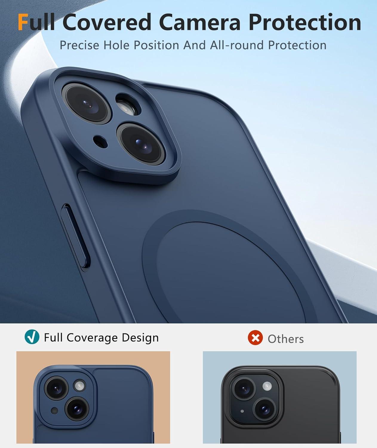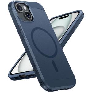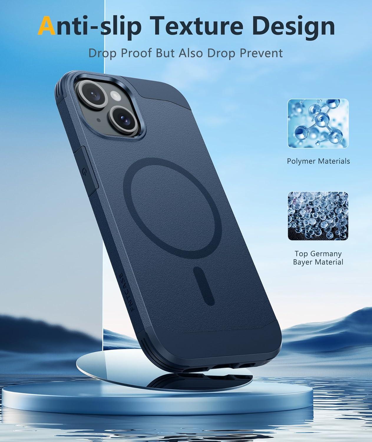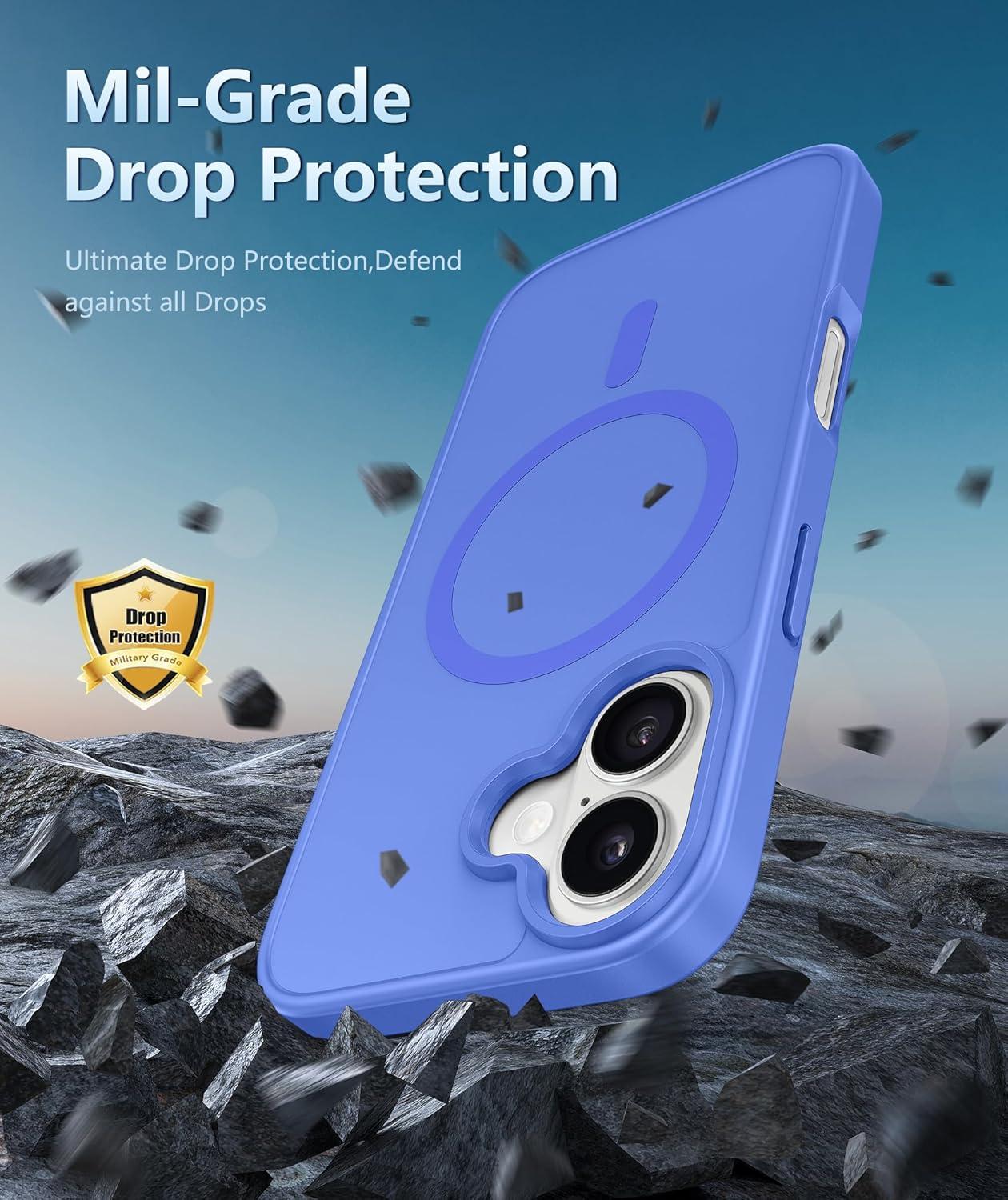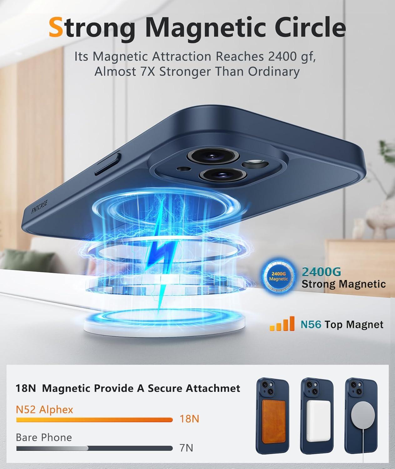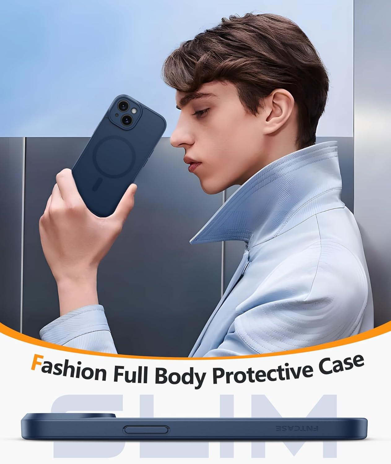 FNTCASE for iPhone 16e Phone Case: Magnetic Matte Textured Silicone Shockproof Military Grade Drop Protection Cell Phone Cover | Compatible with Magsafe | Slim Rugged Anti-Slip Protective Bumper(Matte Blue)