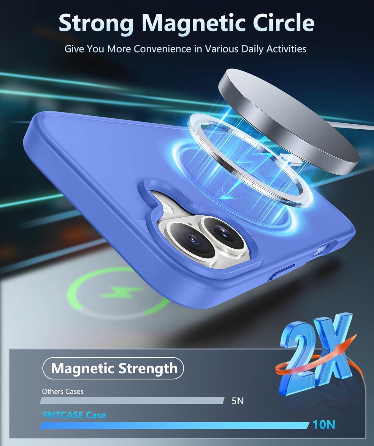 FNTCASE for iPhone 16e Phone Case: Magnetic Matte Textured Silicone Shockproof Military Grade Drop Protection Cell Phone Cover | Compatible with Magsafe | Slim Rugged Anti-Slip Protective Bumper(Blue)