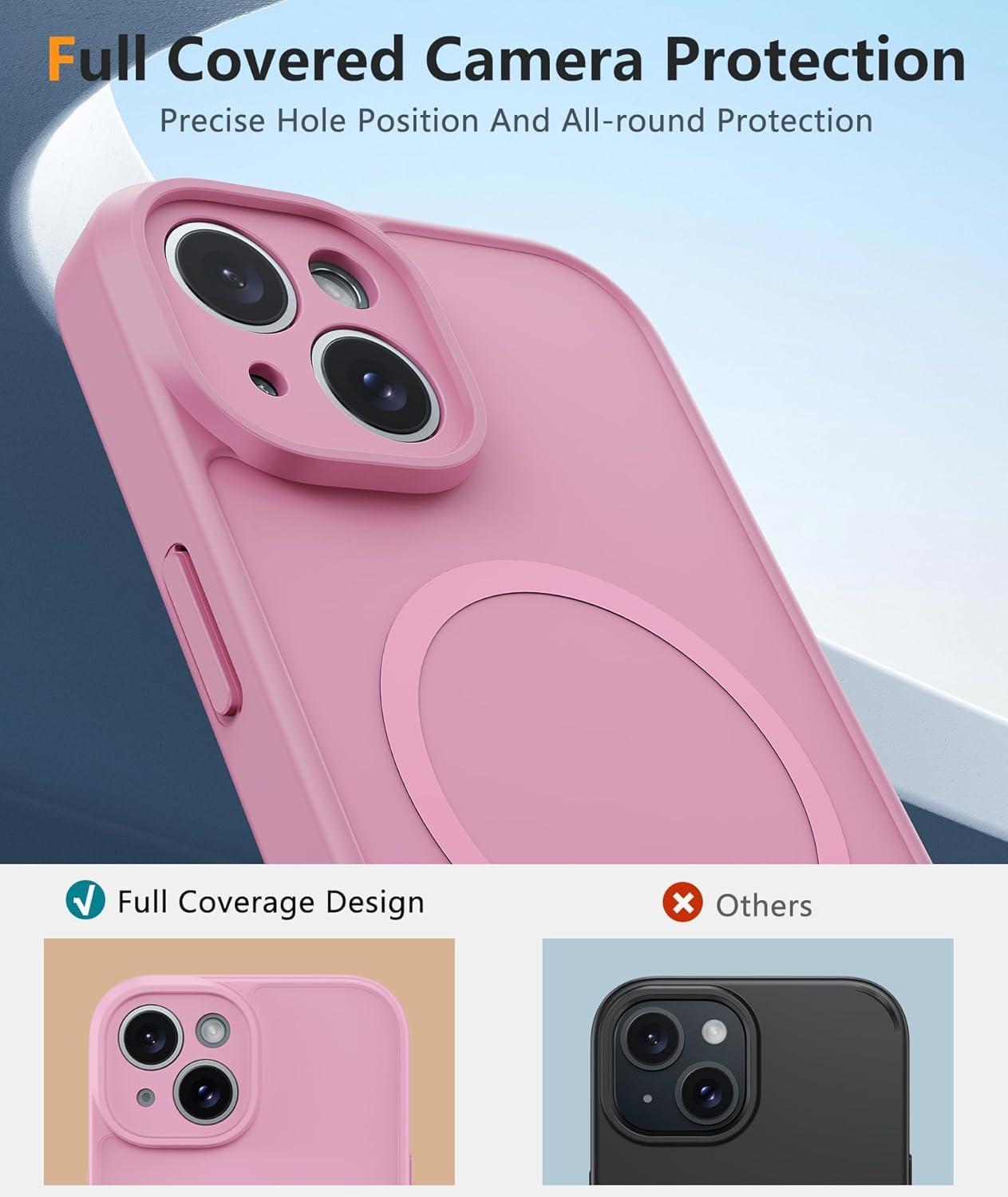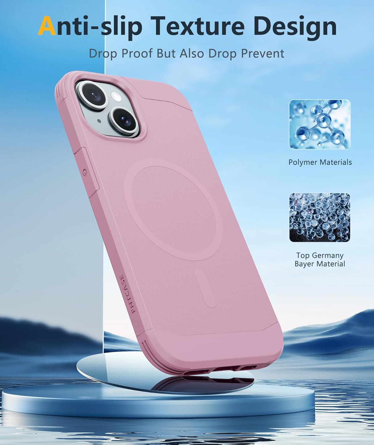 FNTCASE for iPhone 16e Phone Case: Magnetic Matte Textured Silicone Shockproof Military Grade Drop Protection Cell Phone Cover | Compatible with Magsafe | Slim Rugged Anti-Slip Protective Bumper(Matte Pink)