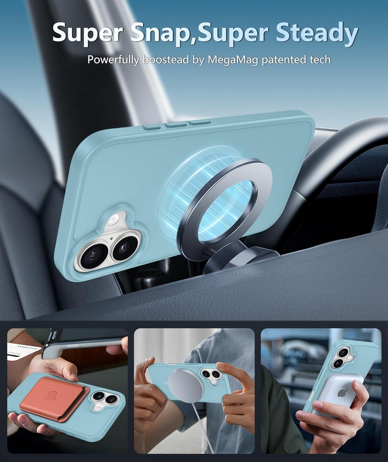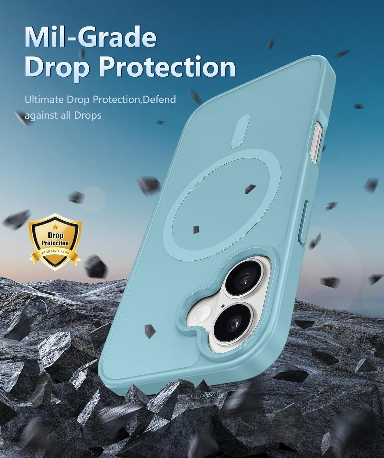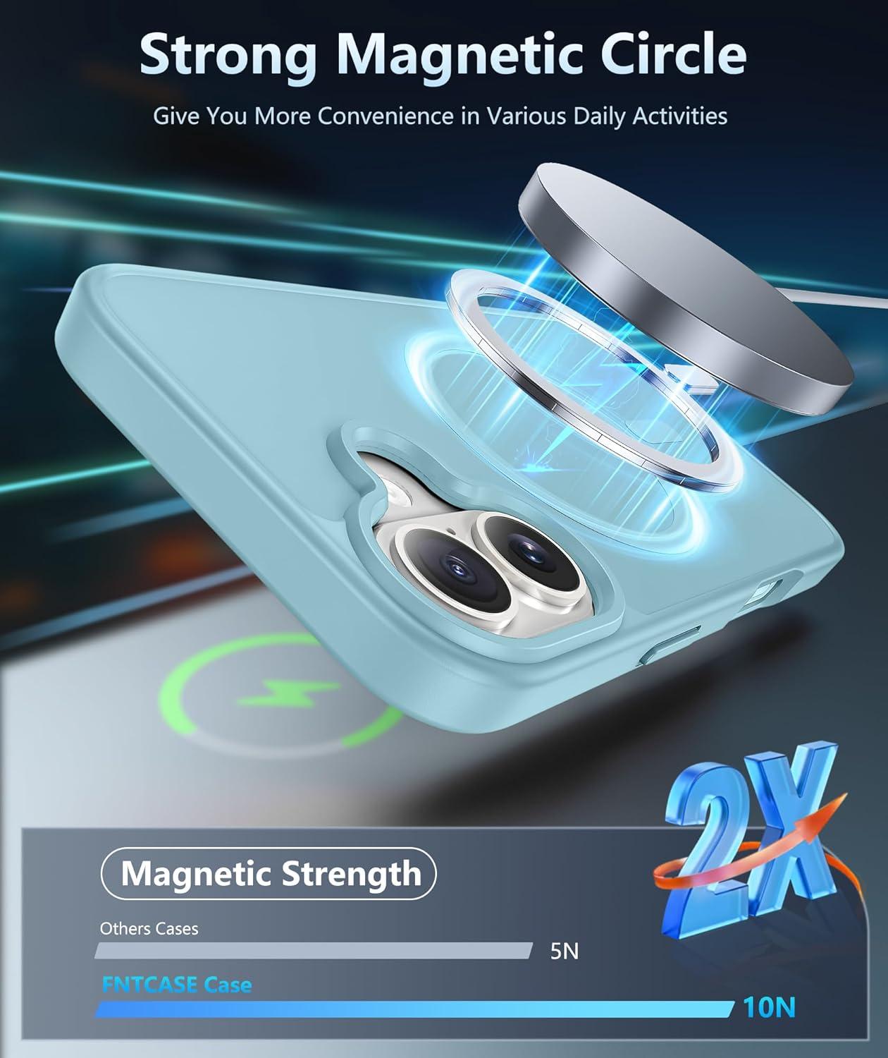 FNTCASE for iPhone 16e Phone Case: Magnetic Matte Textured Silicone Shockproof Military Grade Drop Protection Cell Phone Cover | Compatible with Magsafe | Slim Rugged Anti-Slip Protective Bumper(Cyan)