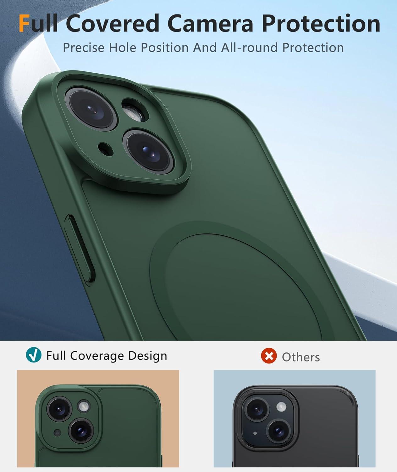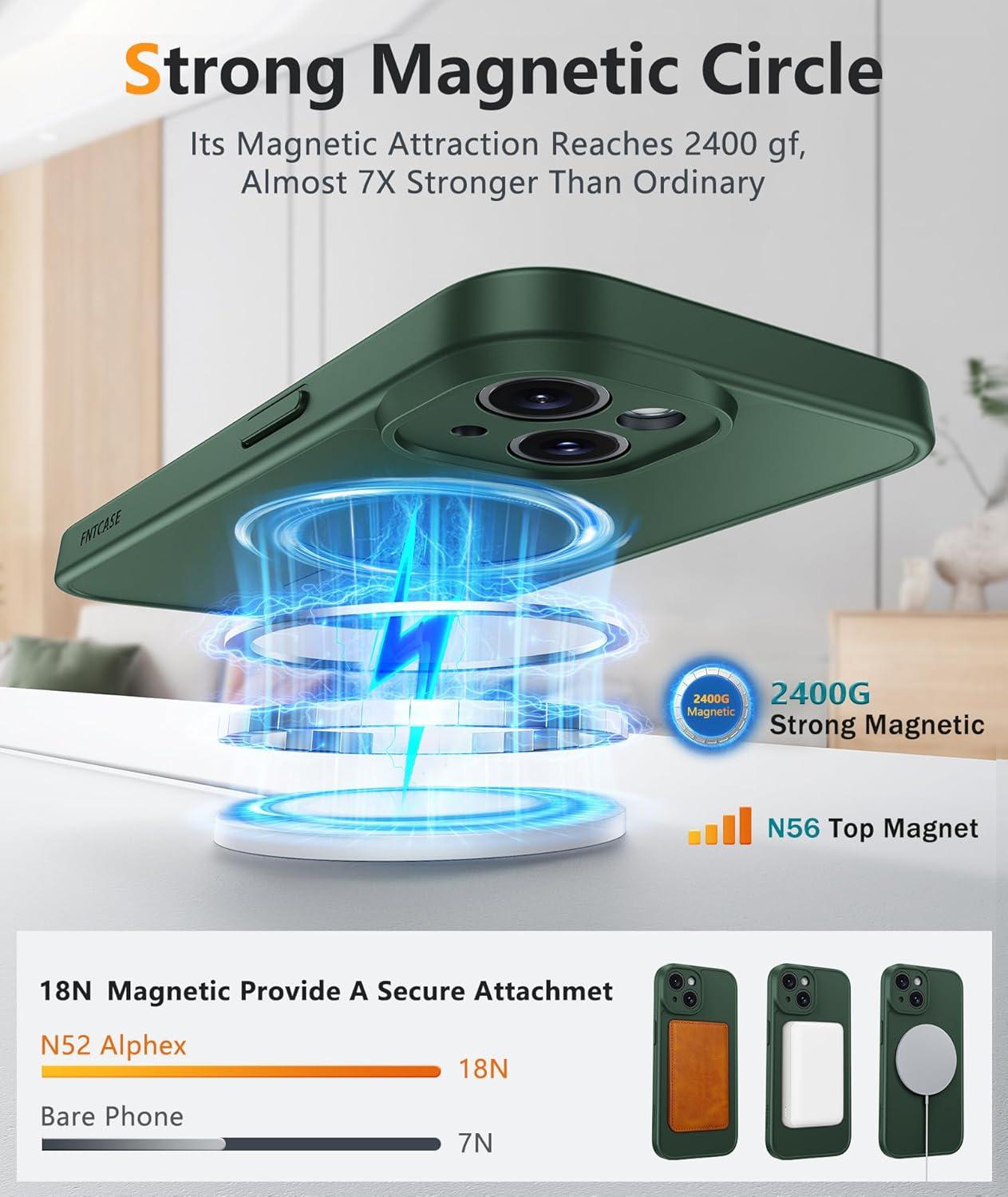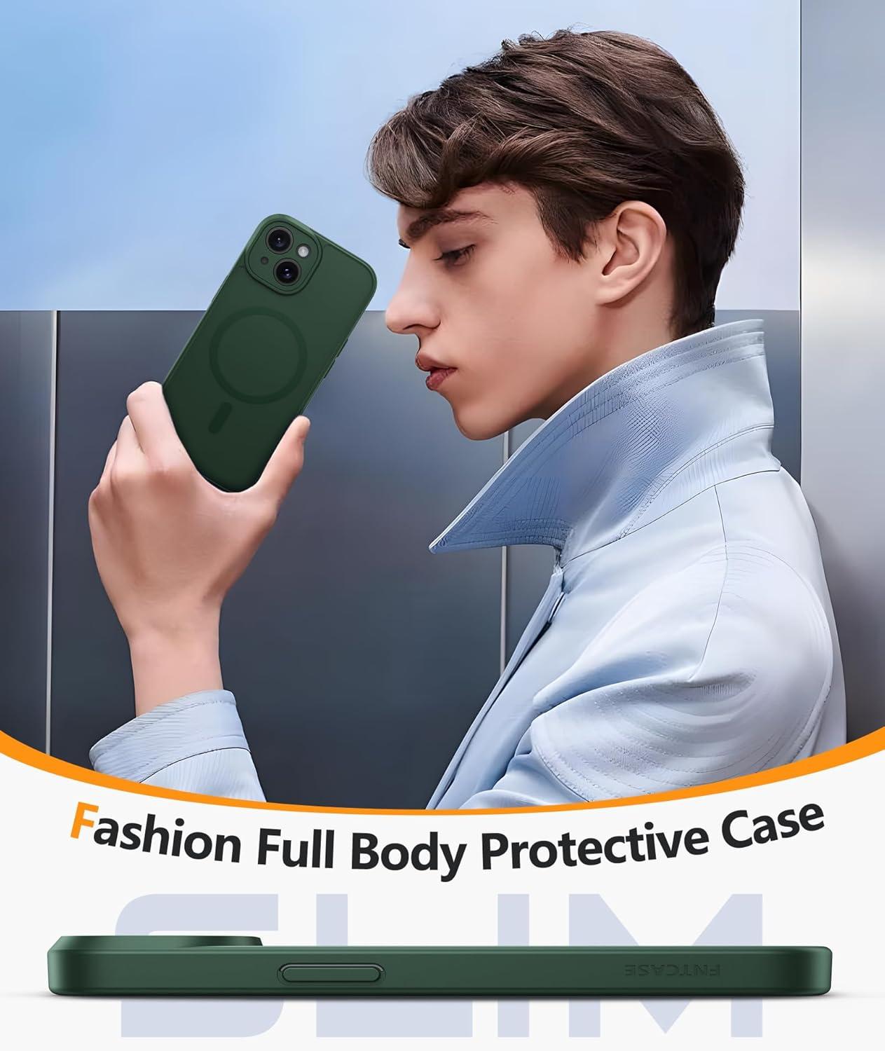 FNTCASE for iPhone 16e Phone Case: Magnetic Matte Textured Silicone Shockproof Military Grade Drop Protection Cell Phone Cover | Compatible with Magsafe | Slim Rugged Anti-Slip Protective Bumper(Matte Green)