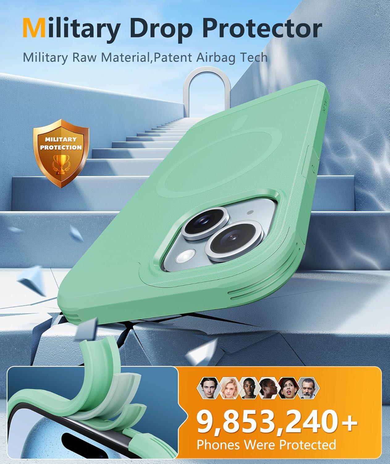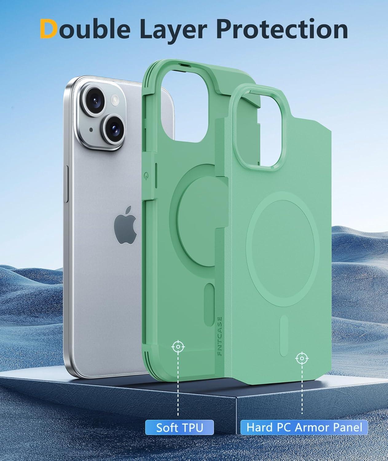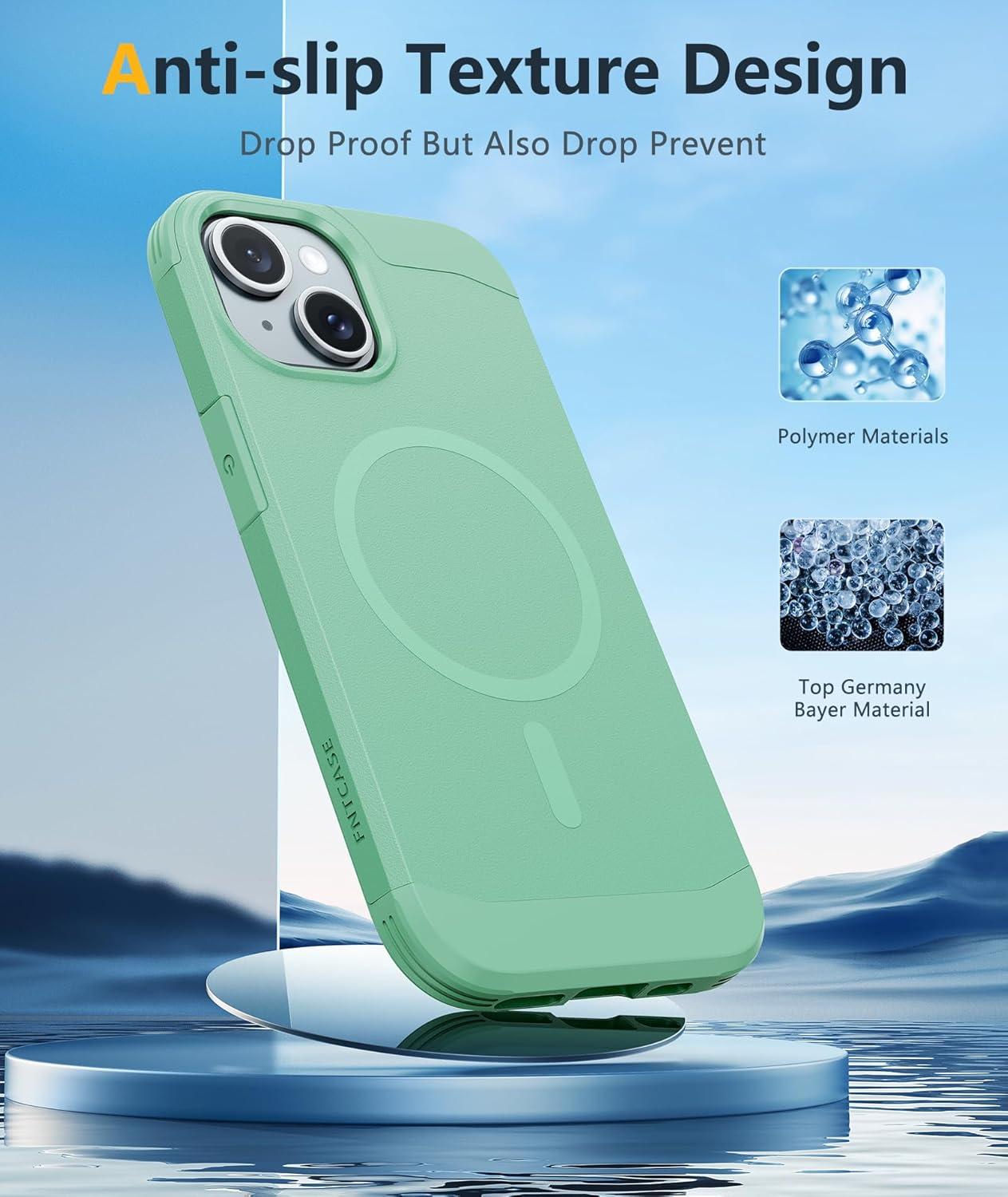 FNTCASE for iPhone 16e Phone Case: Magnetic Matte Textured Silicone Shockproof Military Grade Drop Protection Cell Phone Cover | Compatible with Magsafe | Slim Rugged Anti-Slip Protective Bumper(Green)