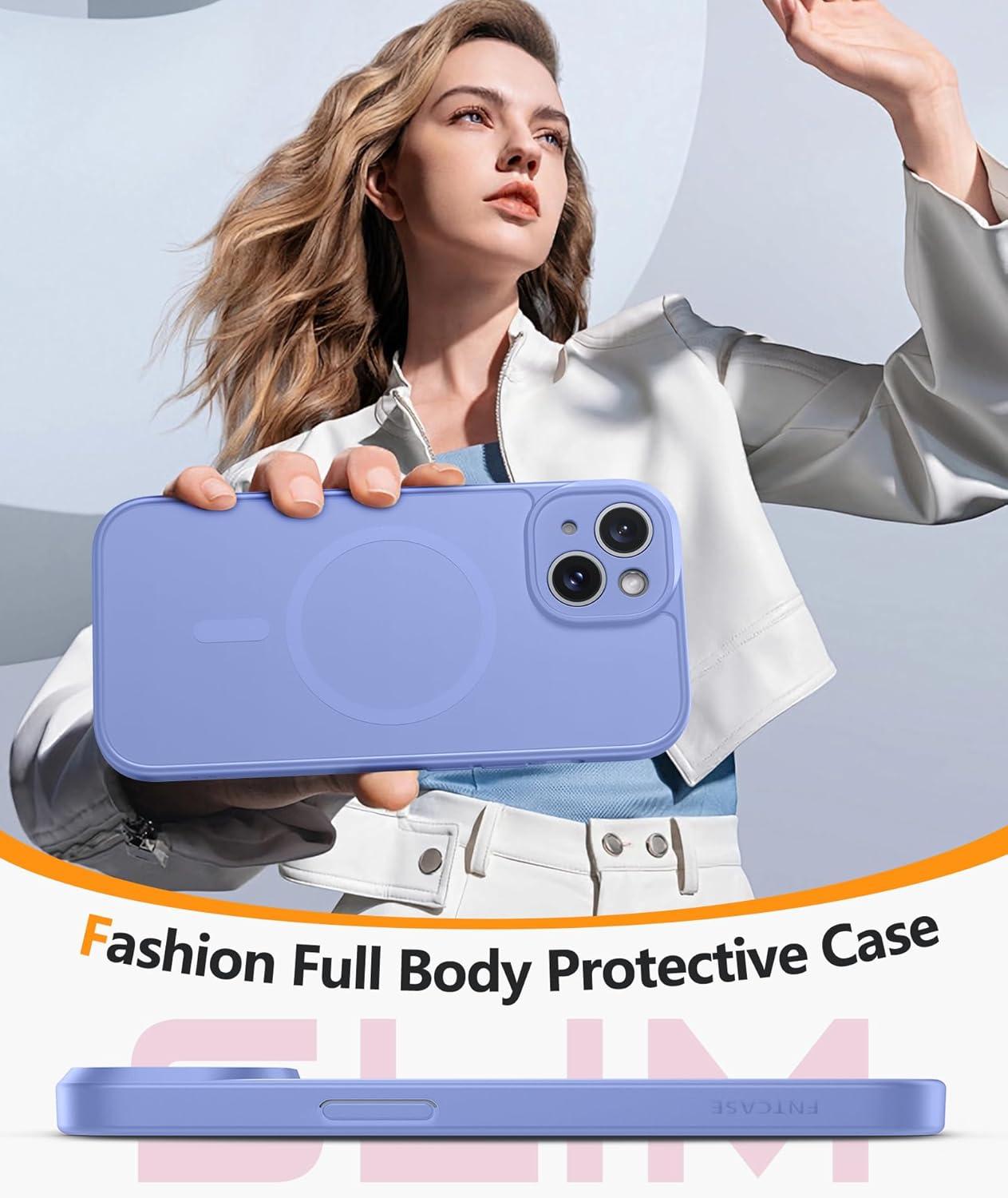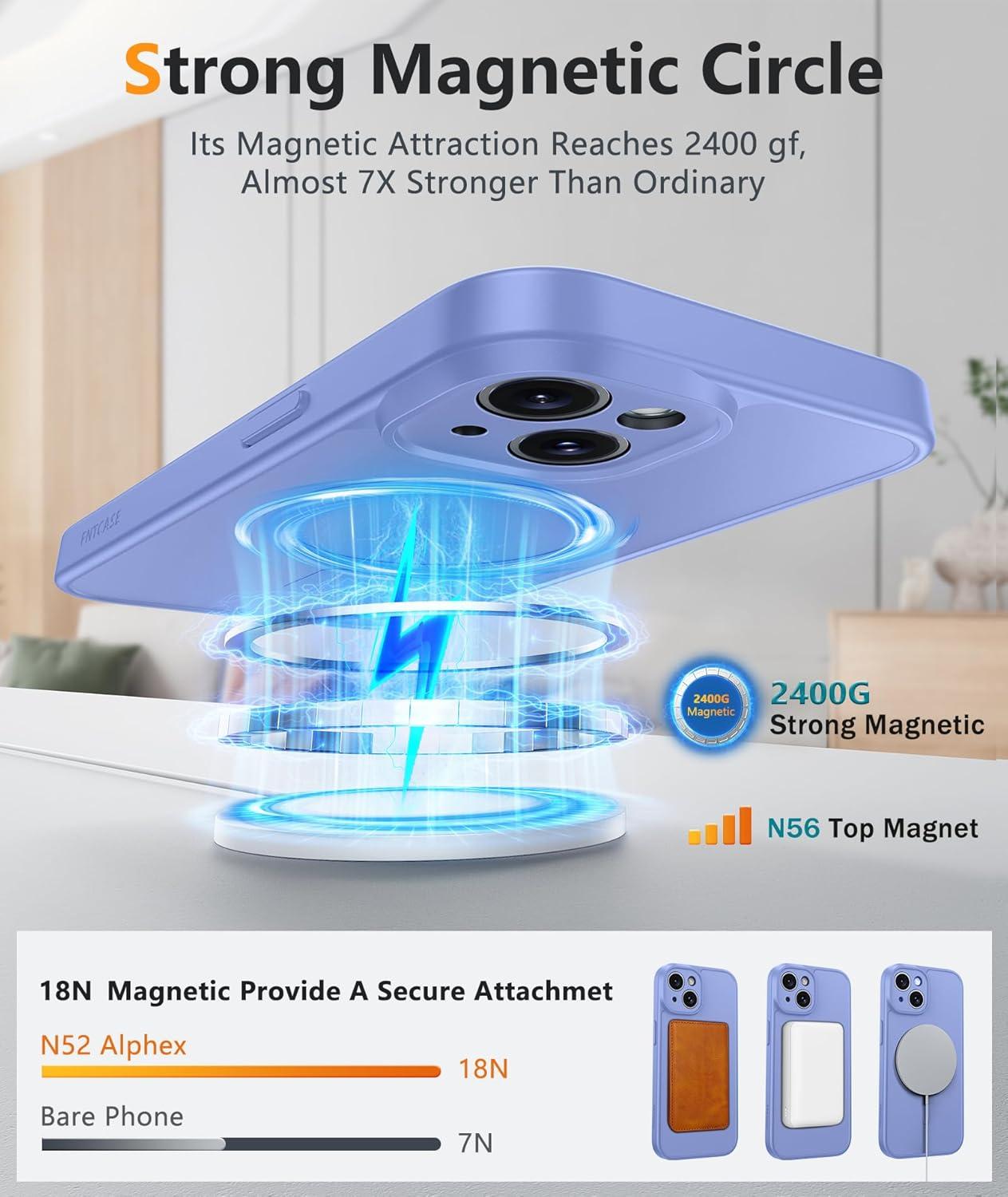 FNTCASE for iPhone 16e Phone Case: Magnetic Matte Textured Silicone Shockproof Military Grade Drop Protection Cell Phone Cover | Compatible with Magsafe | Slim Rugged Anti-Slip Protective Bumper(Purple)