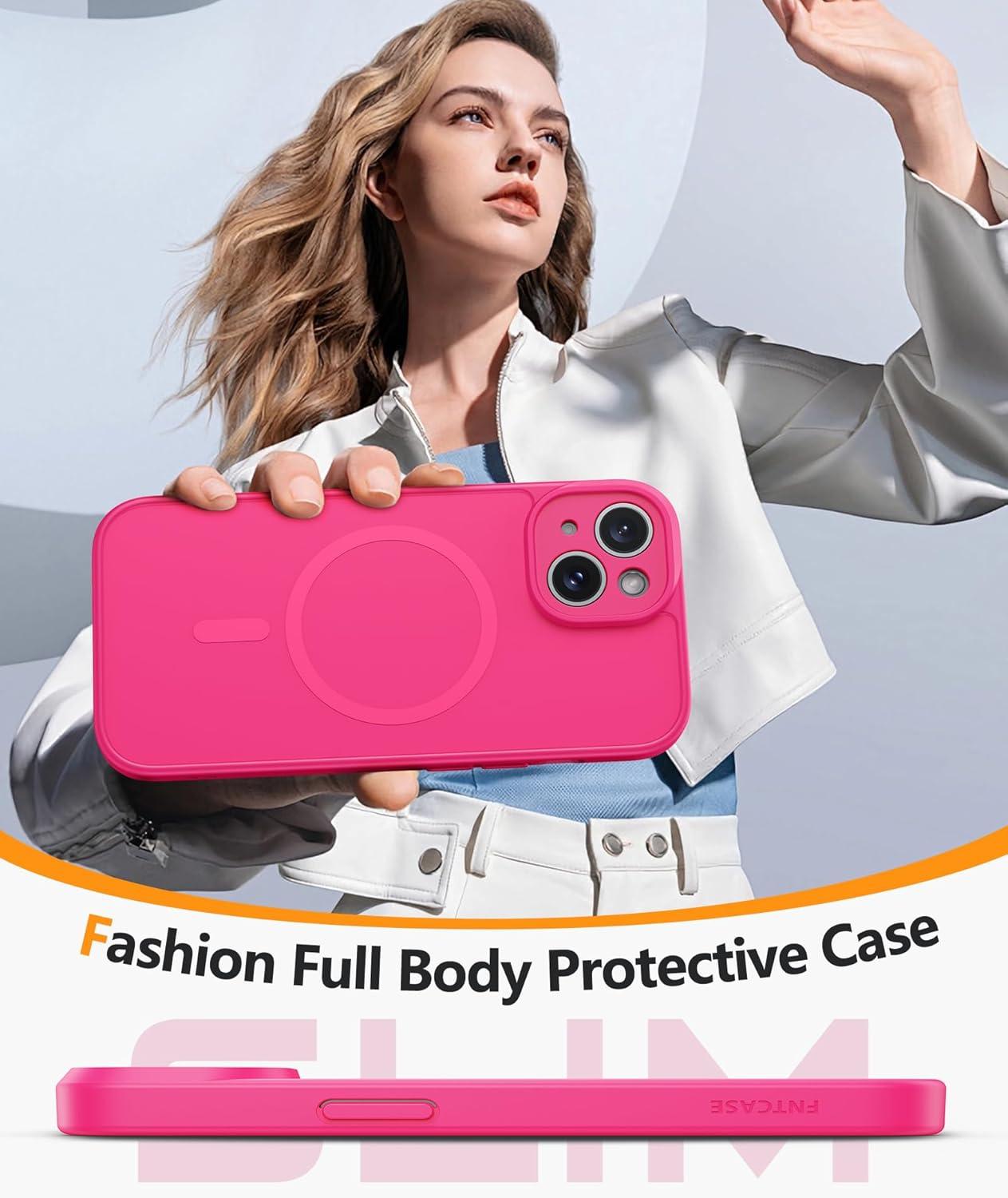 FNTCASE for iPhone 15-Plus Phone Case: for iPhone 14 Plus Case Magnetic Clear Military Shockproof Anti Yellowing Slim Phone Cover, Protective Rugged Case- 6.7 Inch, Hot Pink